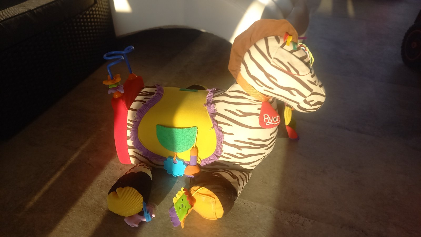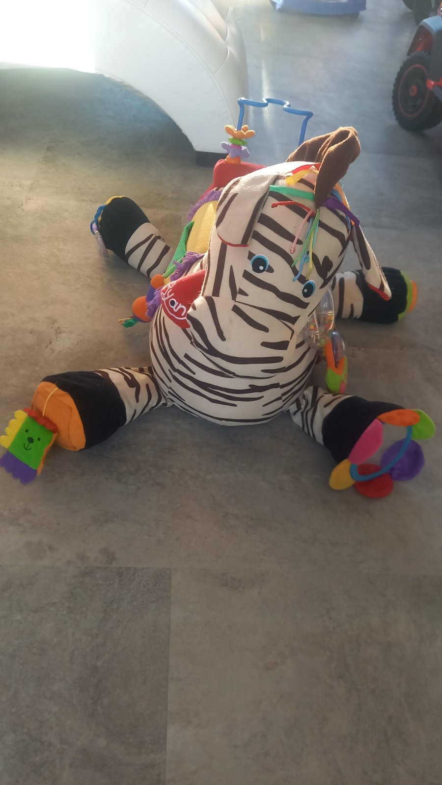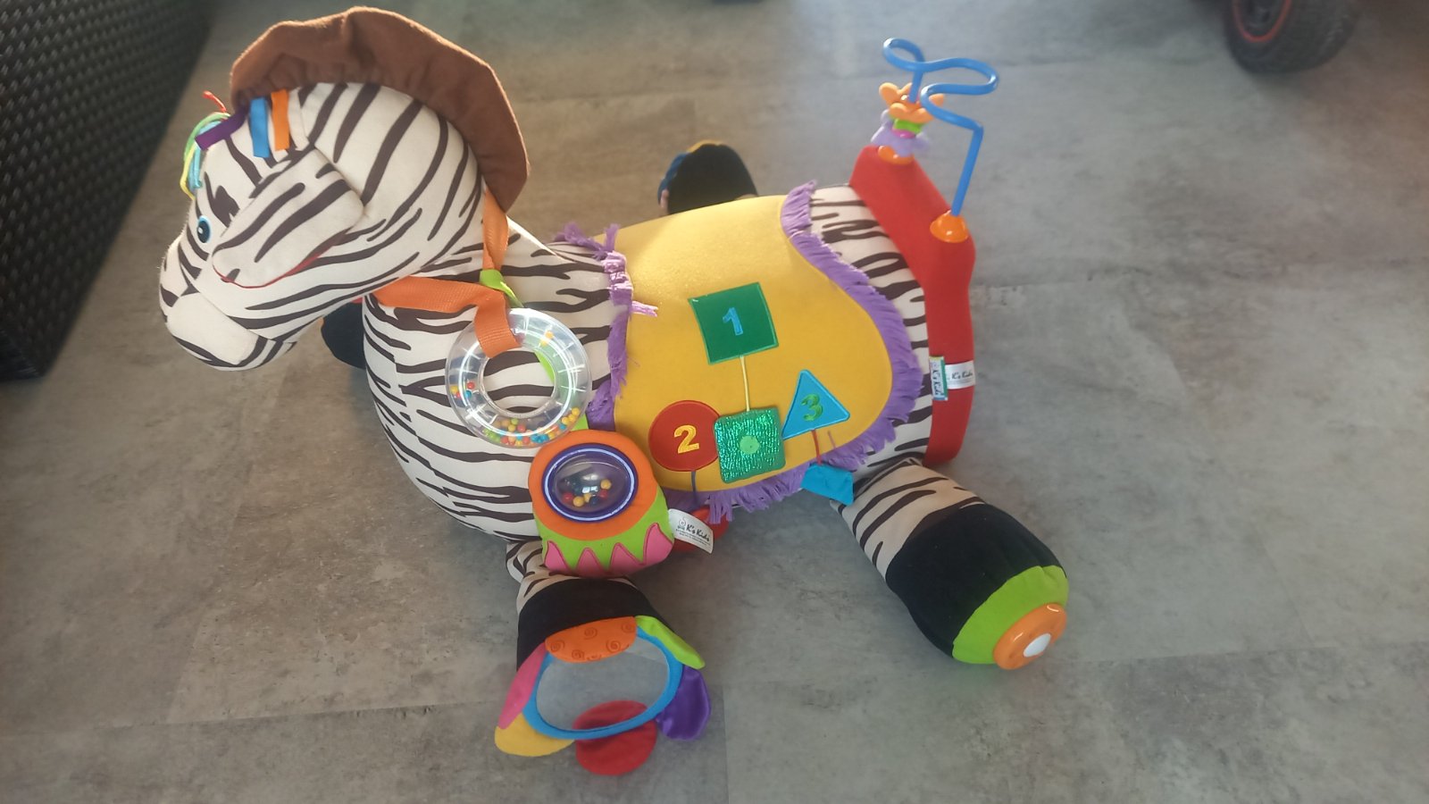 Látková zebra ks kids s hračkami na rozvoj motorik