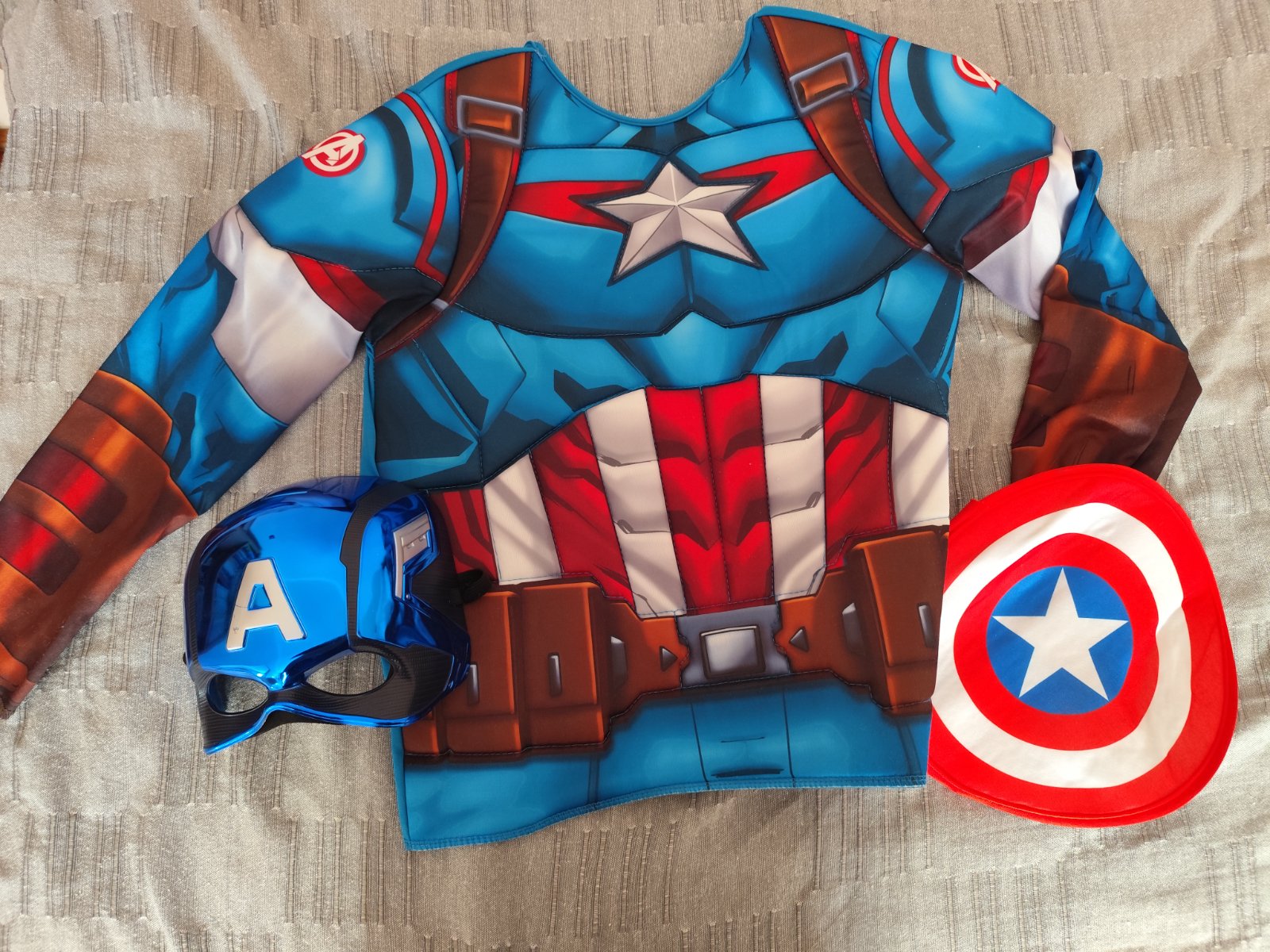 Predám karnevalový masku kapitán America. Číslo je univerzálne, od 7 do 10 rokov. Tričko je čiastočne vystužené, vo výbornom stave po 1 dieťati. Cena tričko, teraz, maska na hlavu celé spolu 10 eur plus pošta.