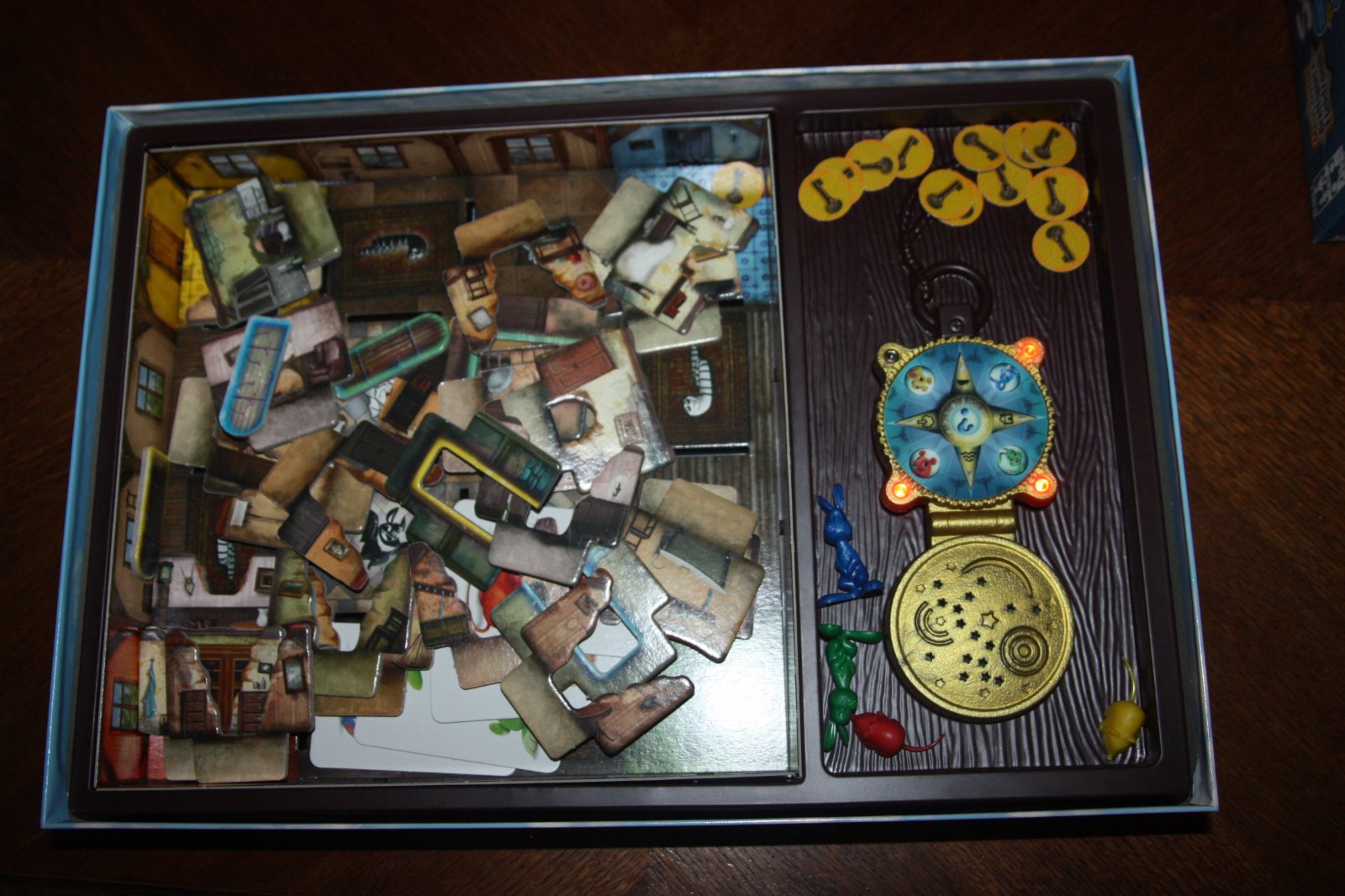 Spoločenská hra pre 2-4 hráčov od 5 rokov. Hraná, kompletná, zachovalá ( krabica na rohoch trošilinku odretá, herný materiál vo výbornom stave). Pravidlá v nemčine. Hra je riadená elektronickou jednotkou hovoriacou po nemecky.