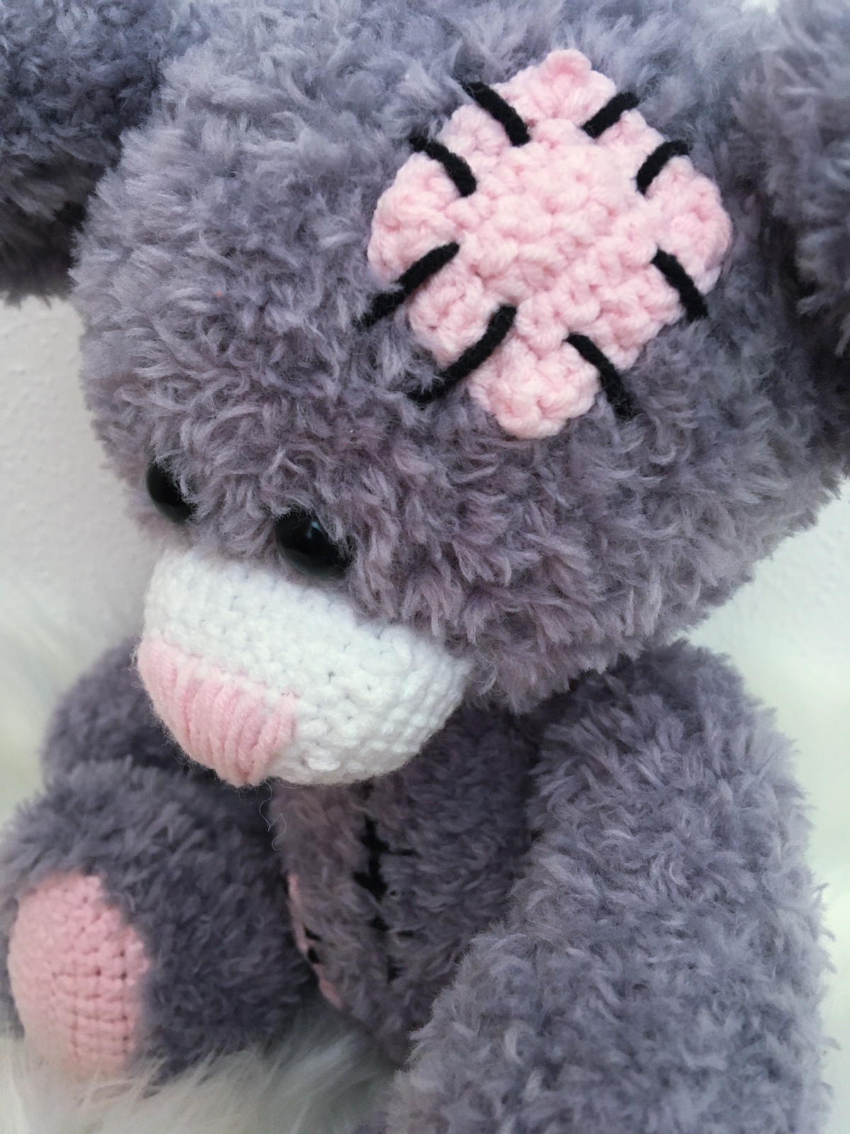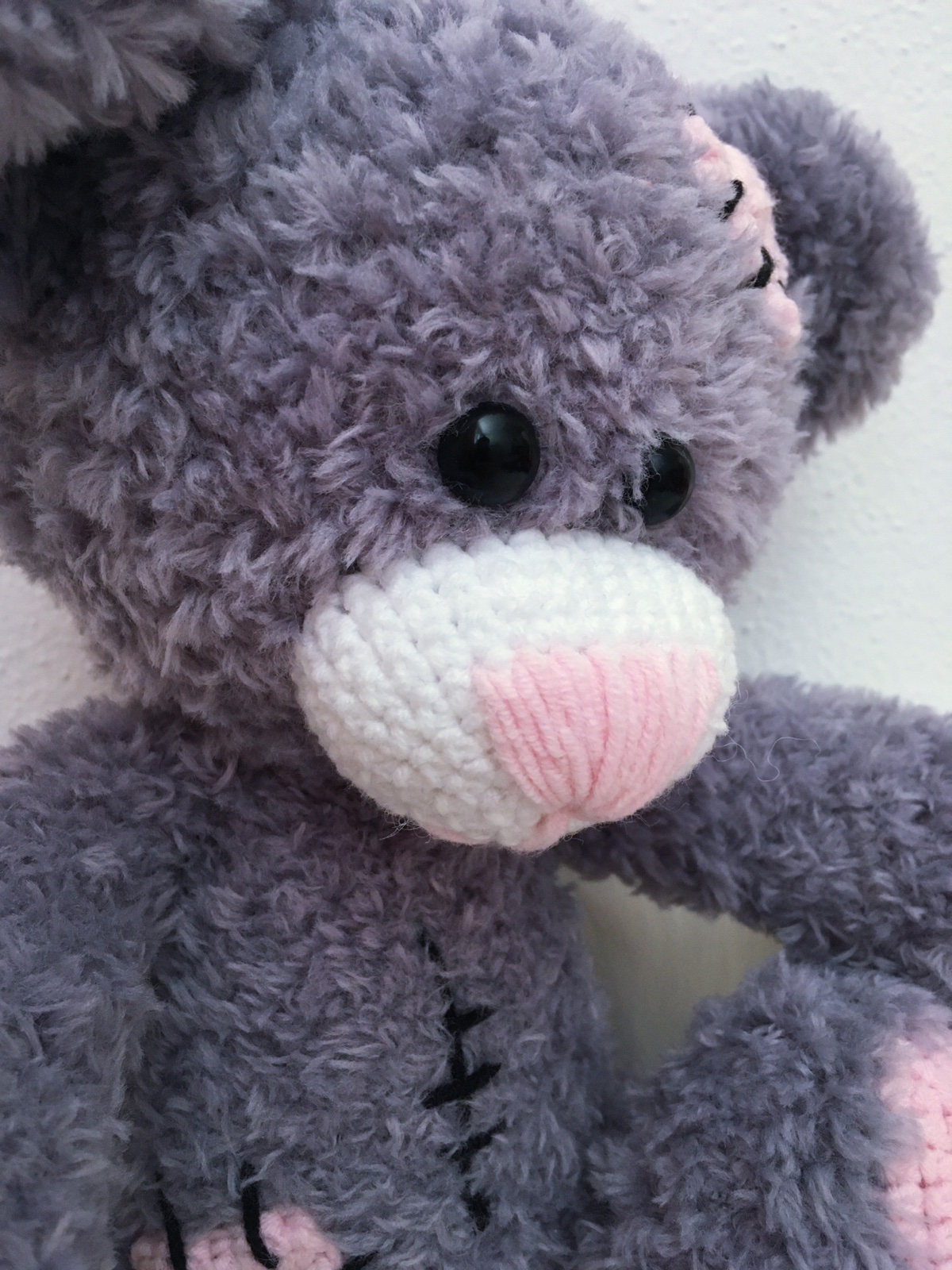Háčkovaná slečna z príjemnej chlpatej vlny s bezpečnostnými očkami, vyplnená dutým vláknom.