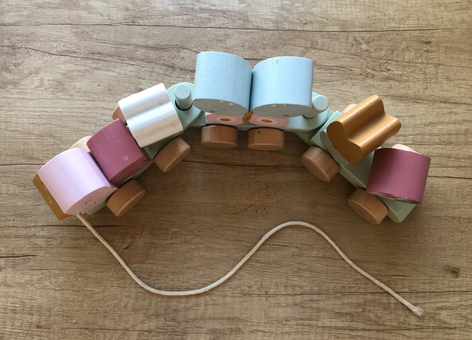- párkrát hraný drevený vláčik Kvety a motýle