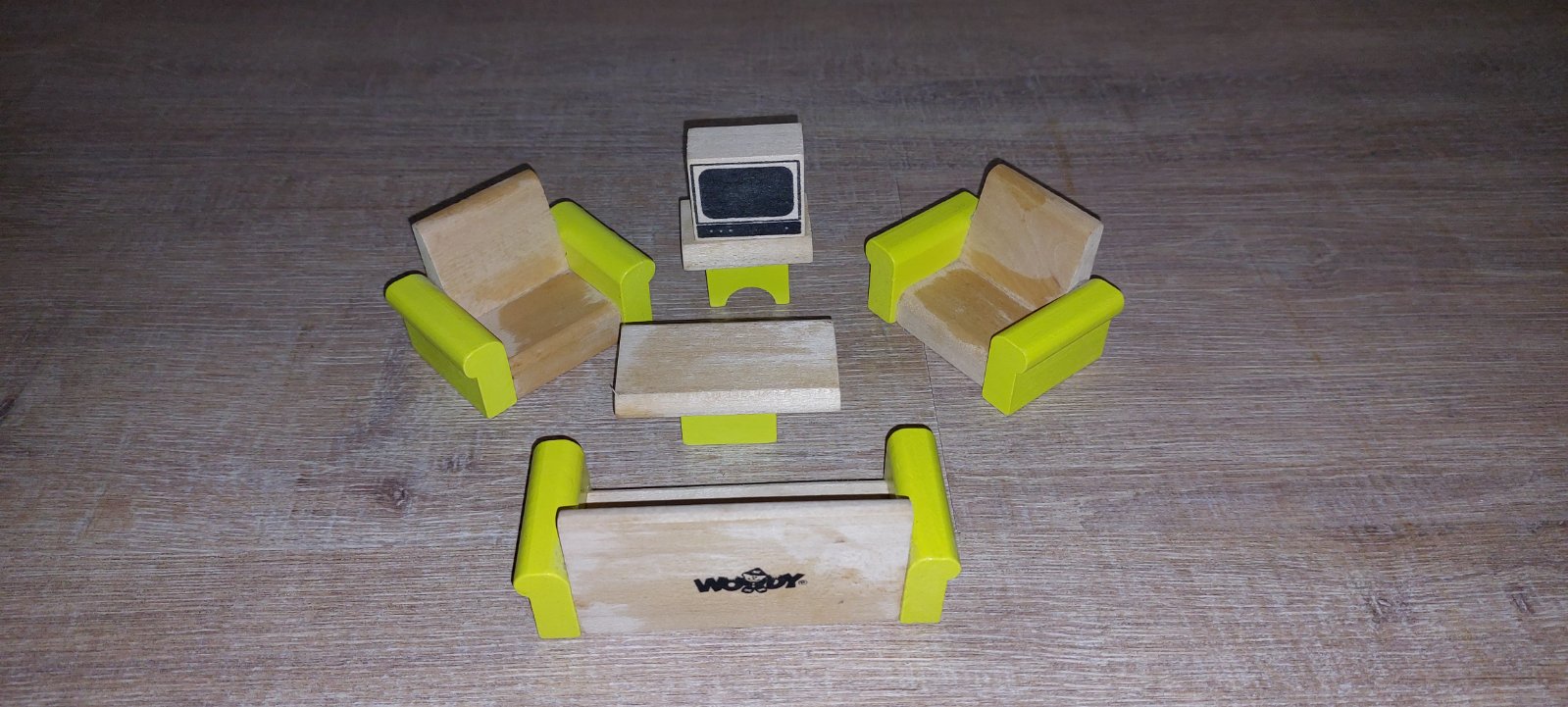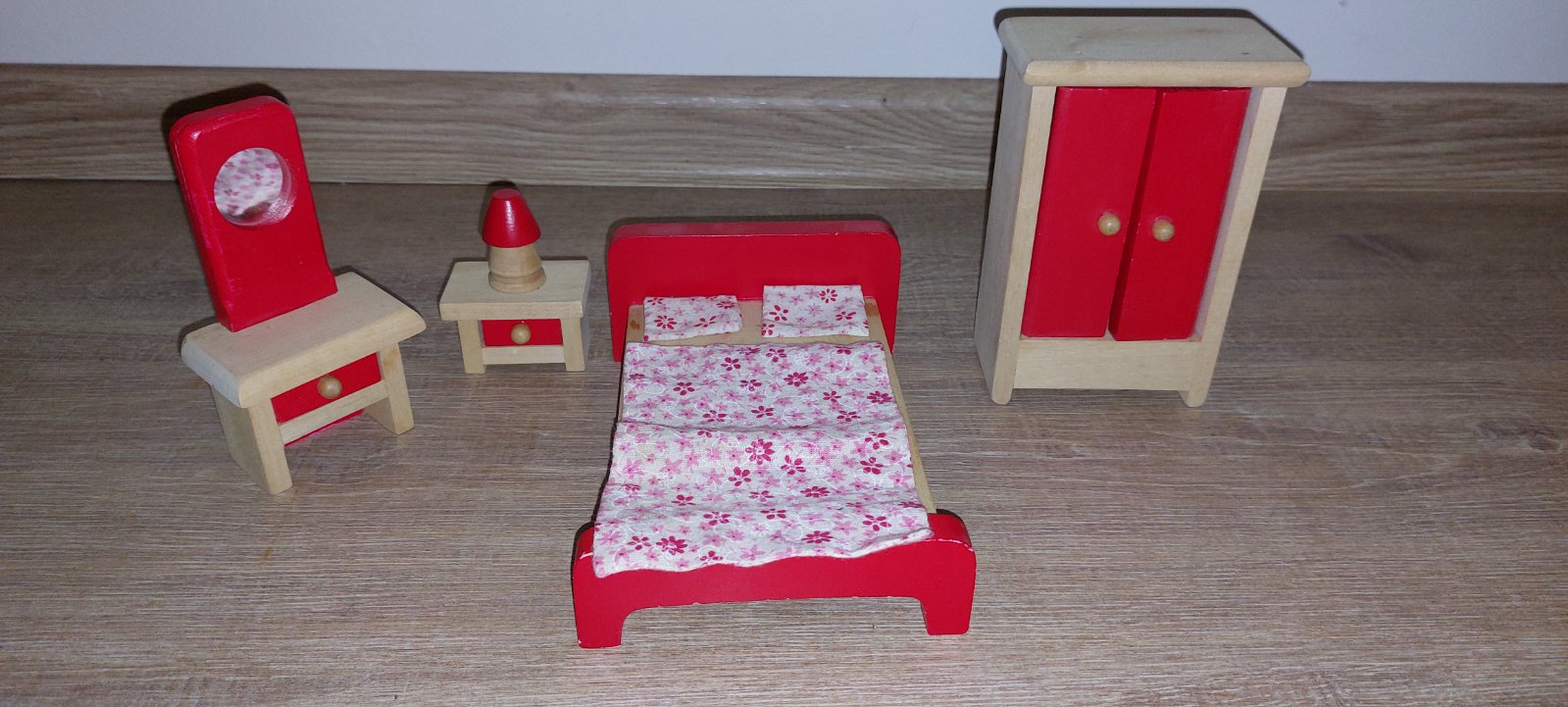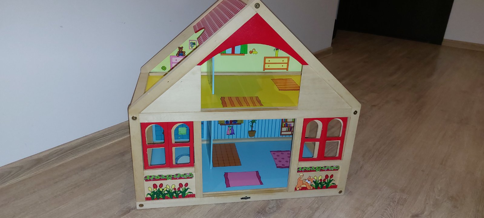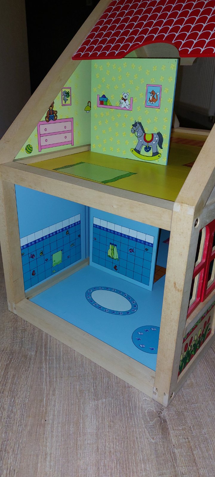 Krasny dreveny domcek Woody s prislusenstvom a rodinkou.