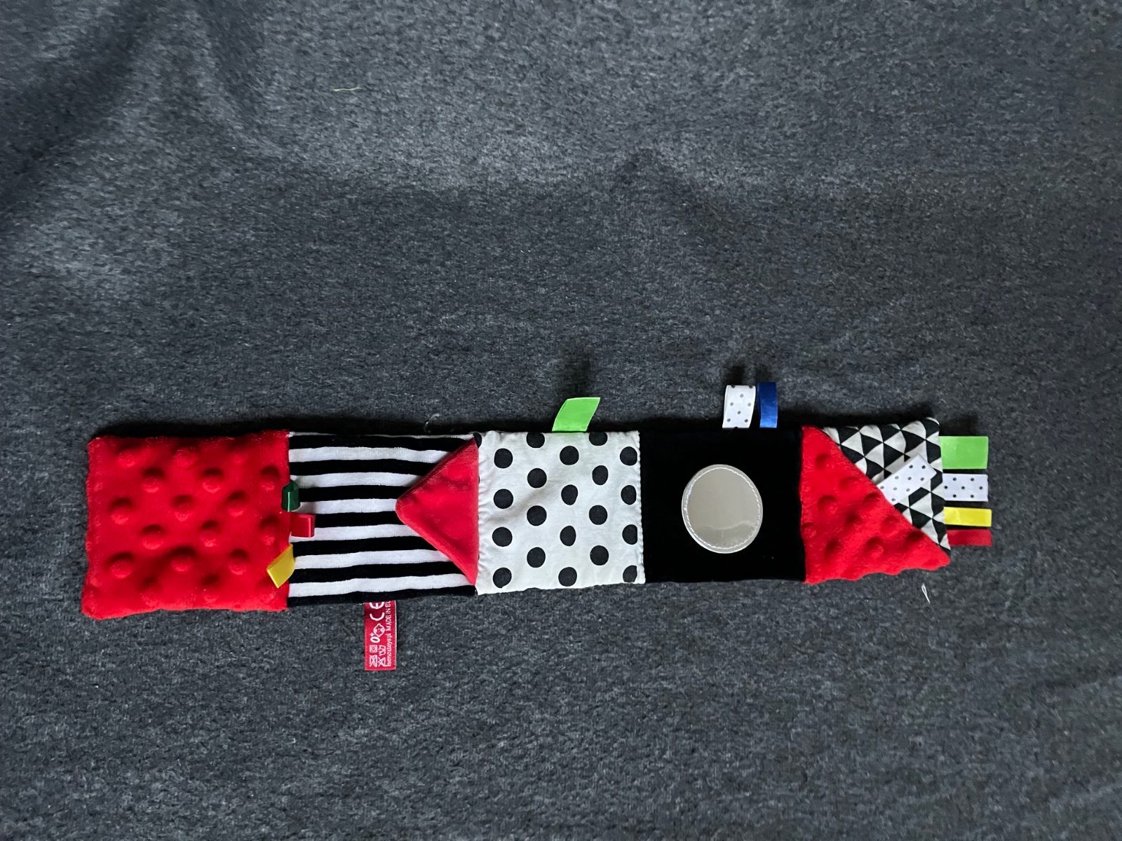 Minimálne hrané kontrastné látkové leporelo. Veľkosť cca 48x8,5cm