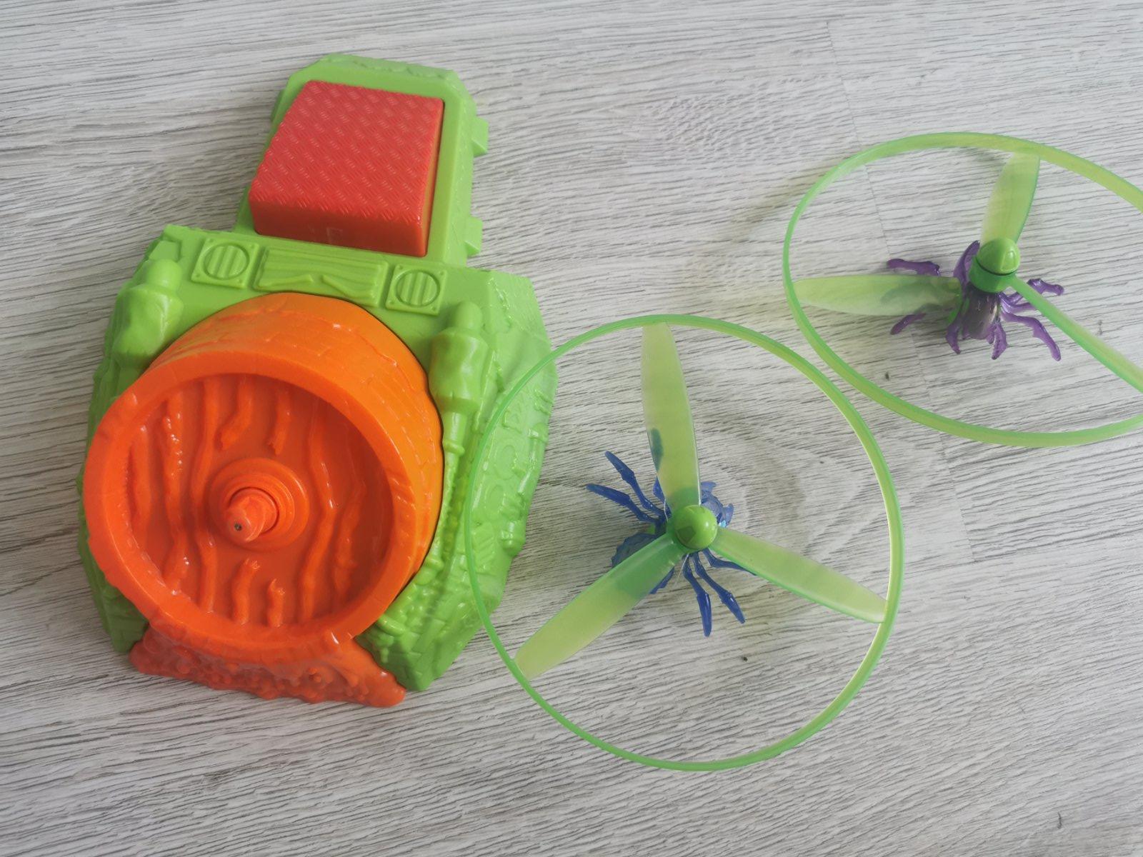 Lietajúce disky a strojček v top stave akurát 1 disk má kúsok odložené, viď foto. Stačí vložiť disk, stlačiť strojček s nohou alebo s rukou a disk odletí. V