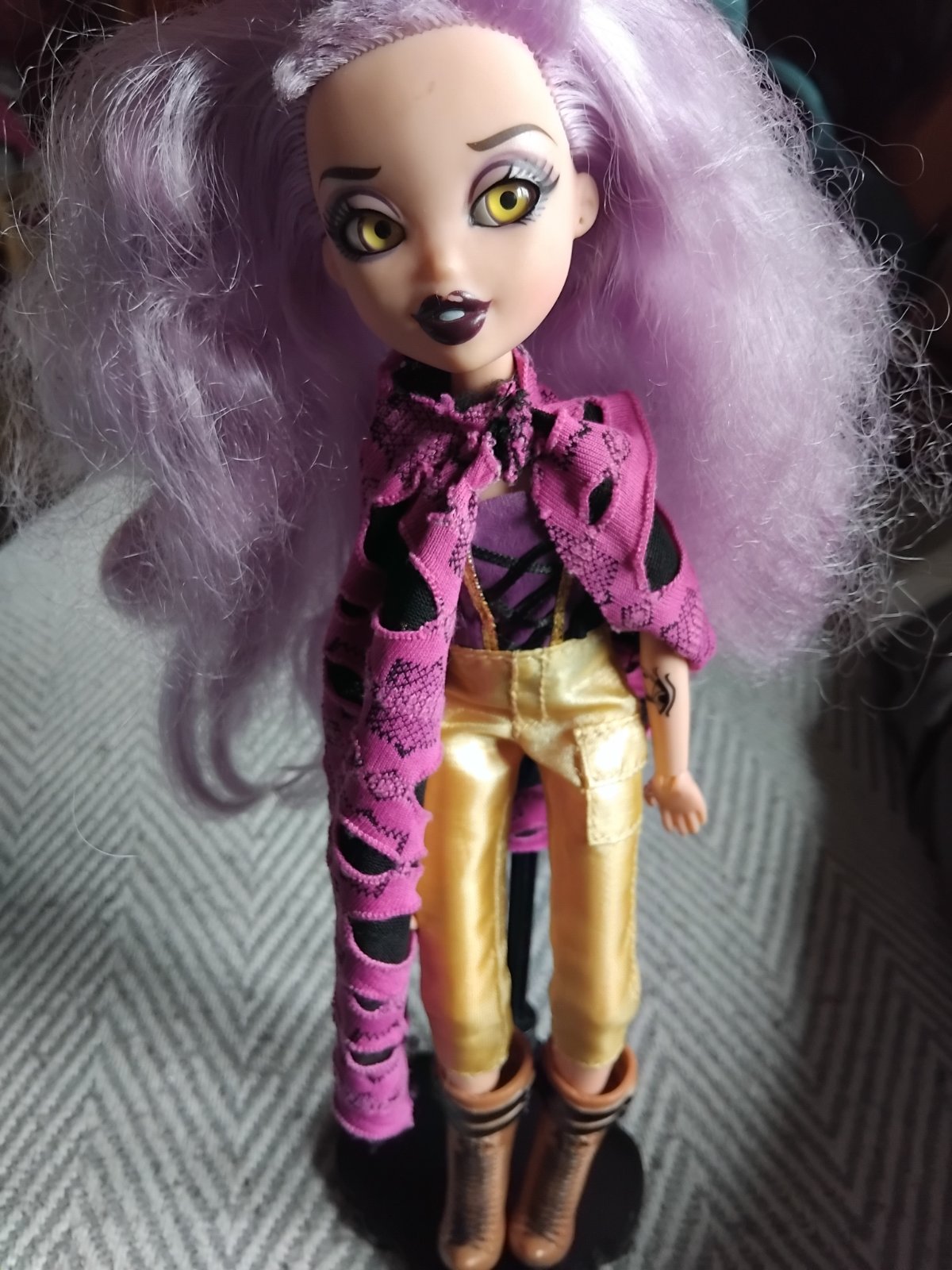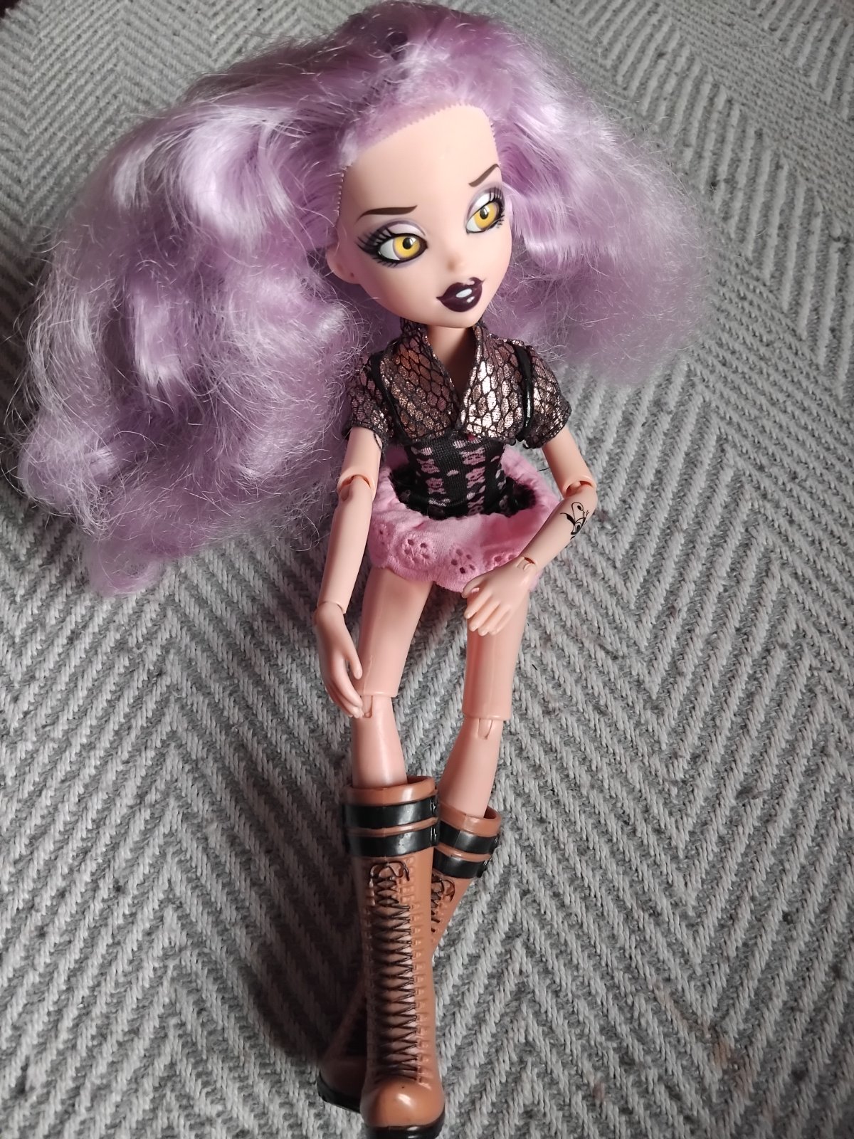 Kvalitna babika s ohybnymi klbmi. Naheadne oblecenie, stojan. Jedine ofinu ma ostrihanu.