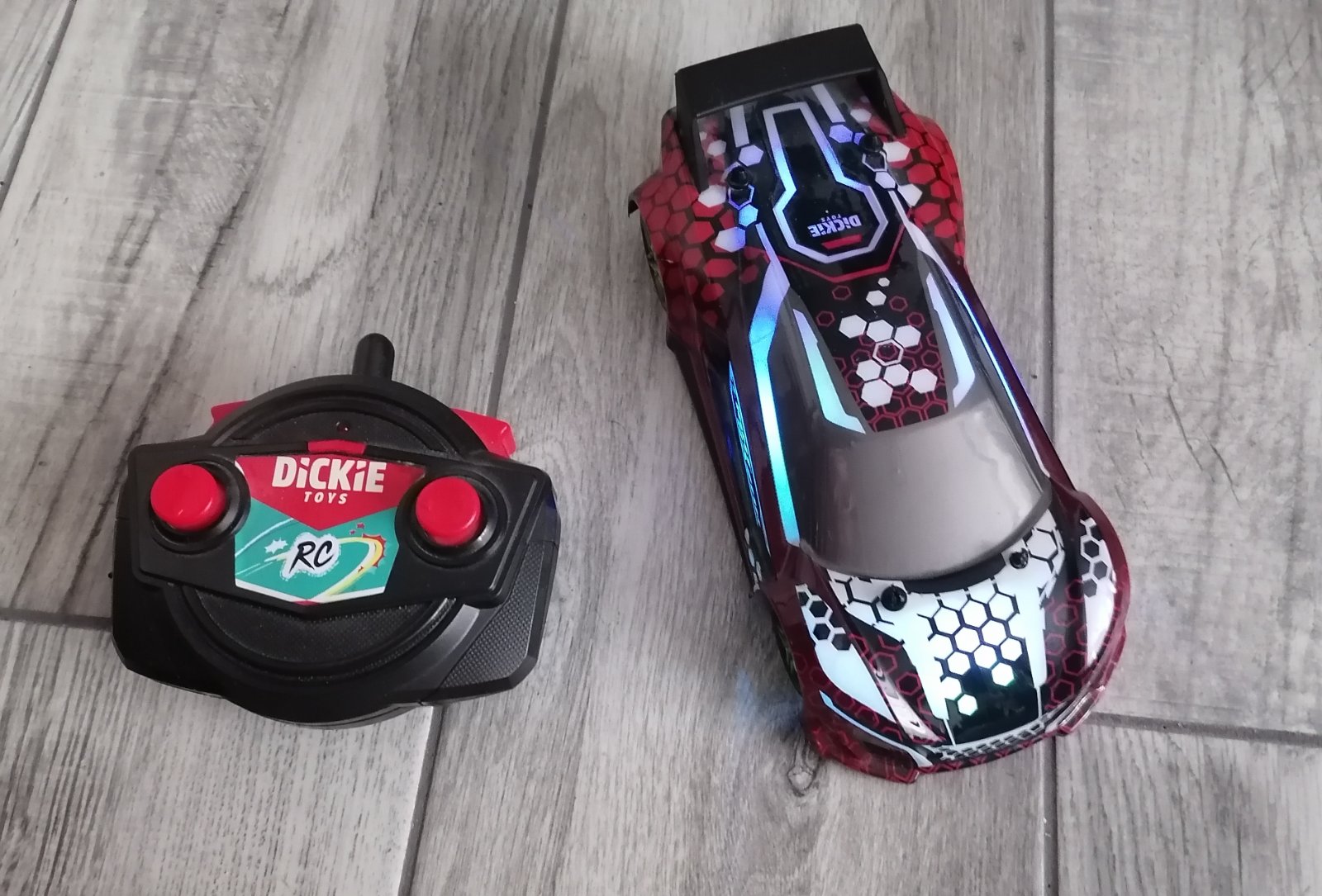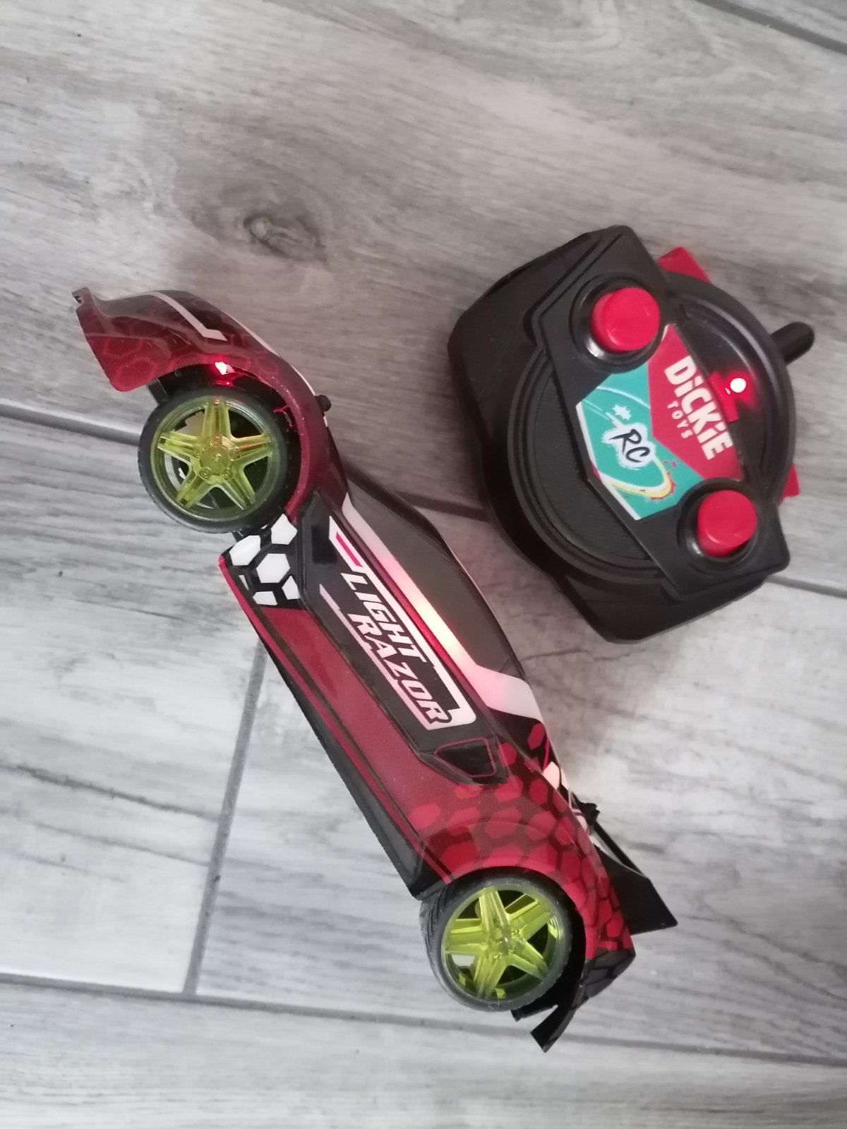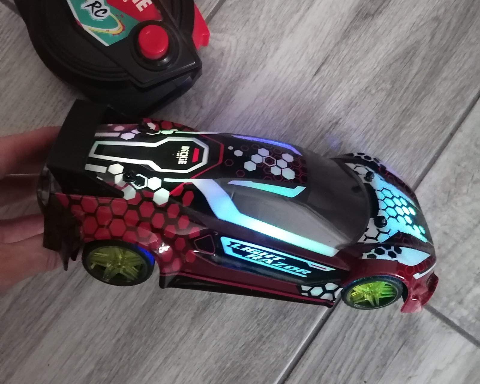 V super stave. Bliká, hraje a svieti. Ide dopredu, aj dozadu.
