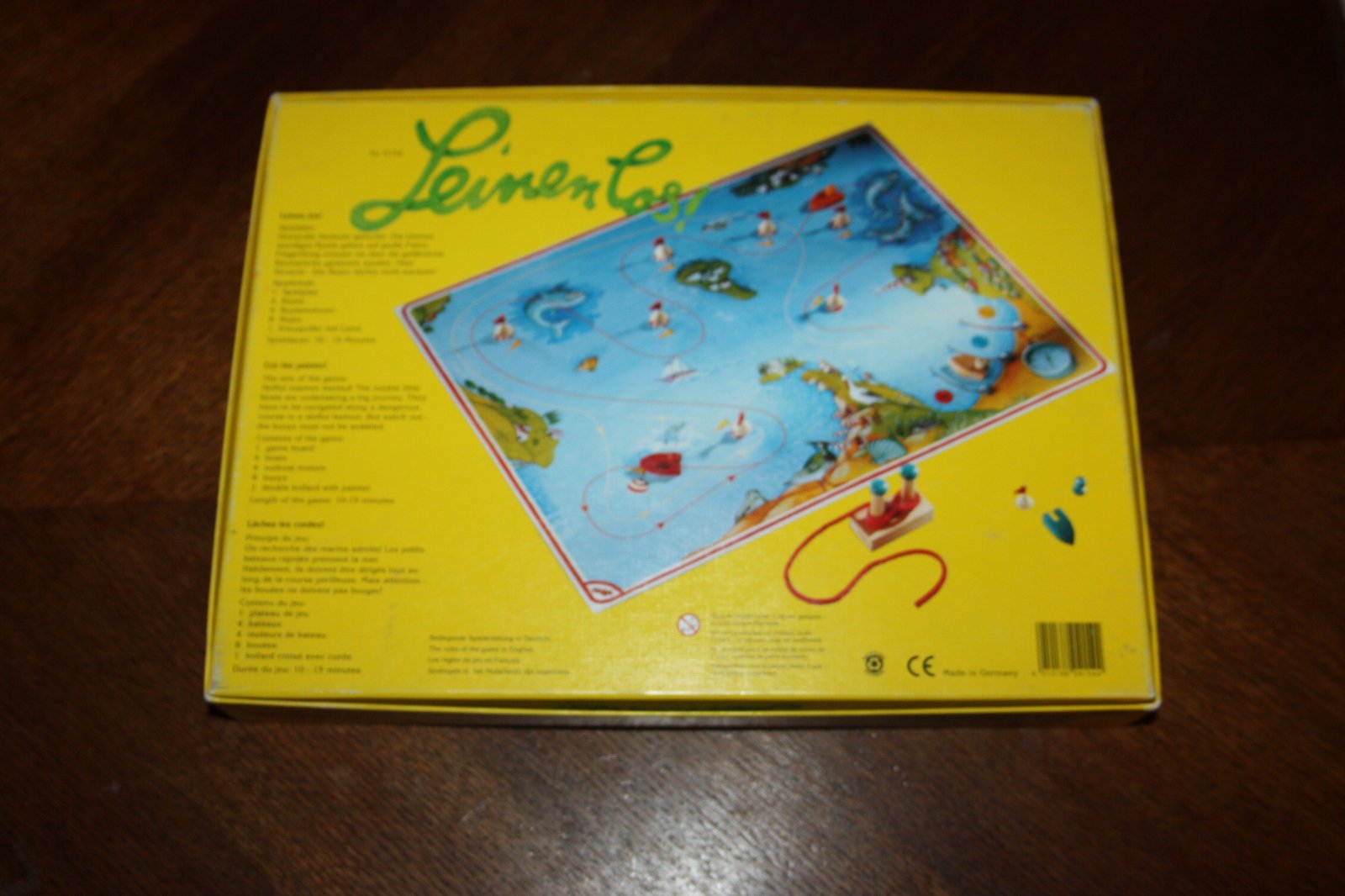 Spolocenska hra pre 2-4 hracov od 6 rokov. Pravidla v nemcine, anglictine a francuzstine. Hrana, krabica trochu vyblednuta, inak super stav.