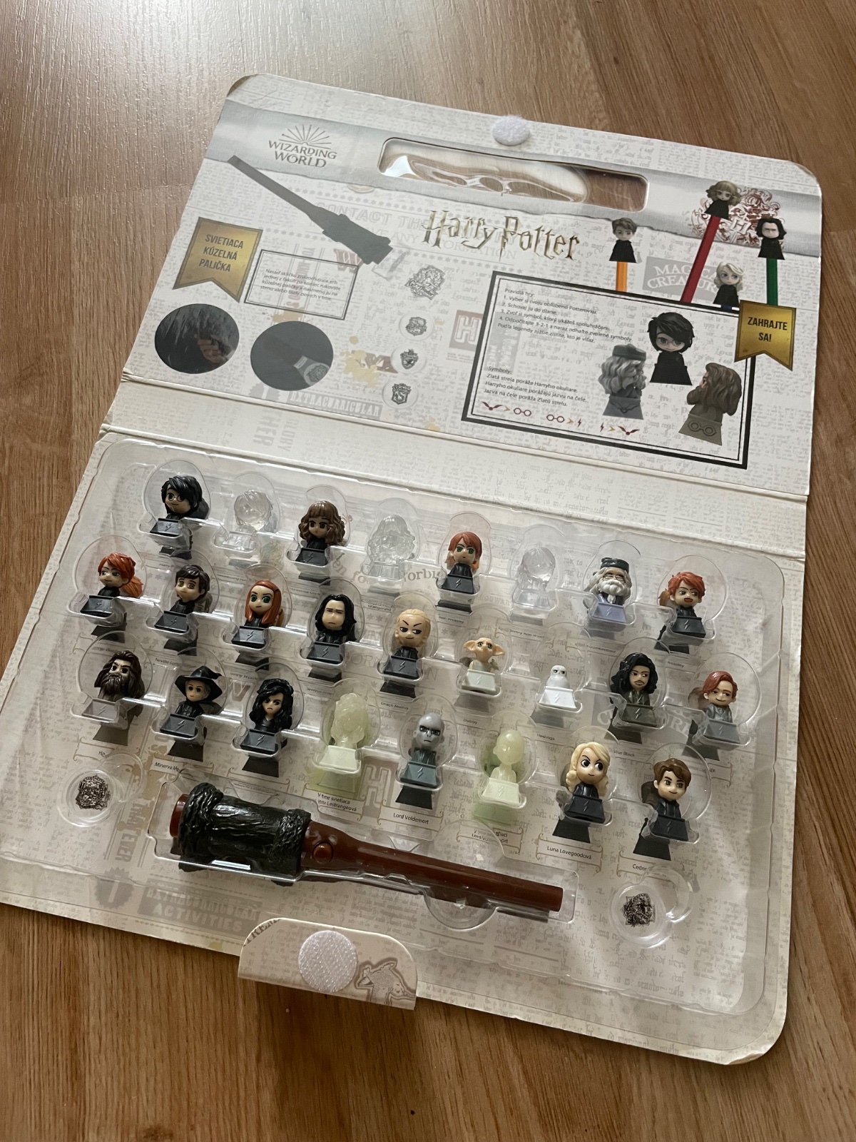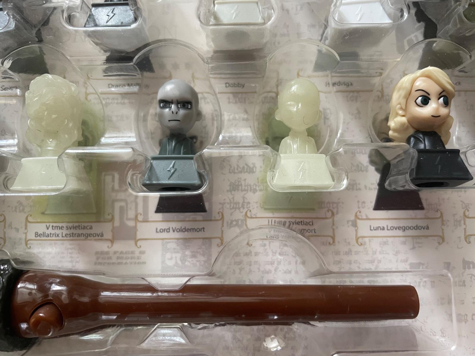 Kompletna zberatelska sada 25 figurok, svietiacej kuzelnej palicky a vymennych sklicok Harry Potter. Vsetko spolu v kufriku. Mozny osobny odber ba-petrzalka alebo postou.