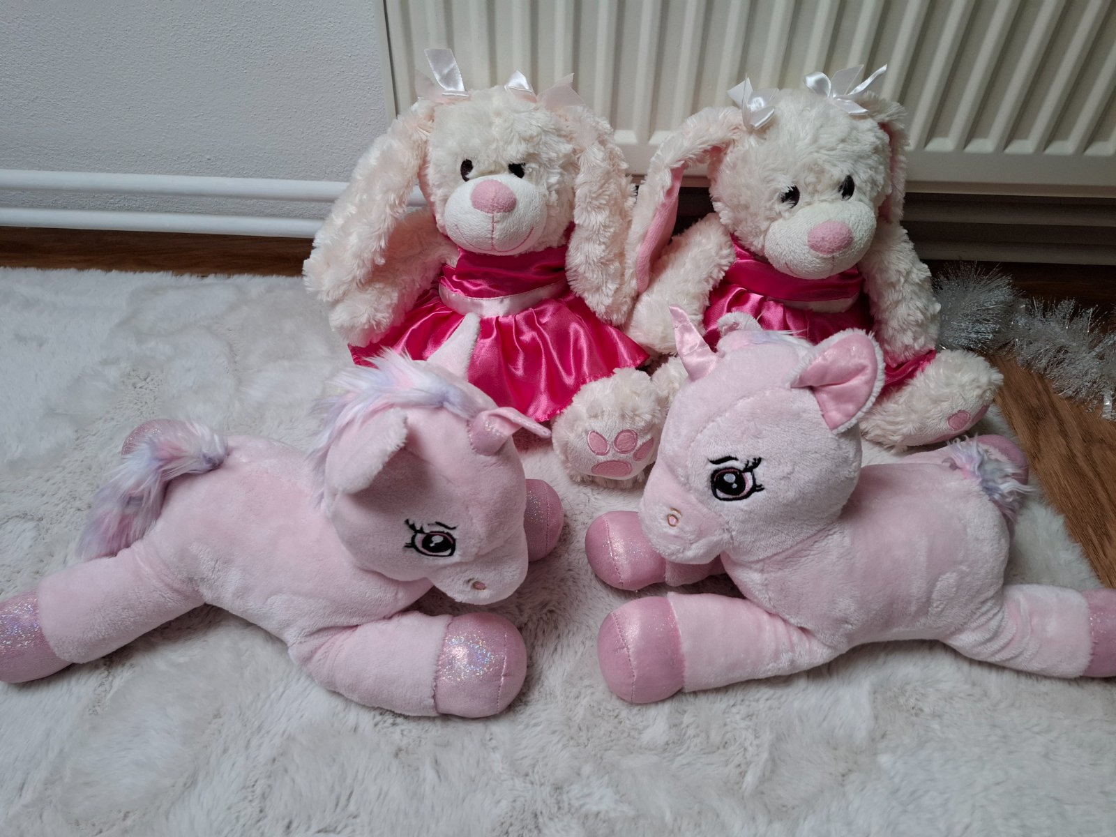 Hrané hračky, na zajkoch je to vidno len na tej suknicke, lebo ich stále vyzliekali, cena za kus 2,50 Eur, spolu 9 Eur