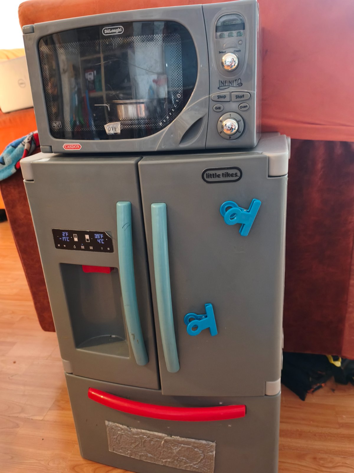 Kuchynka je trošku viac používaná tak tu počítam za 5 eur ale chladnička s mikrovlnkou sú dosť zachovale tak tie spolu za 15. Pôvodná cena: 70 eur. Plus plastové potraviny vo vnútri na fotke. Len osobný odber Bratislava. Dakujem