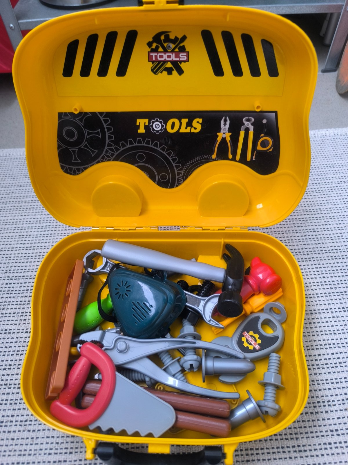 Praktický kufrík, ktorý deťom uľahčí uloženie a premiestnenie sady náradia. Je ľahký a jednoducho prenosný s dizajnom školského autobusu.