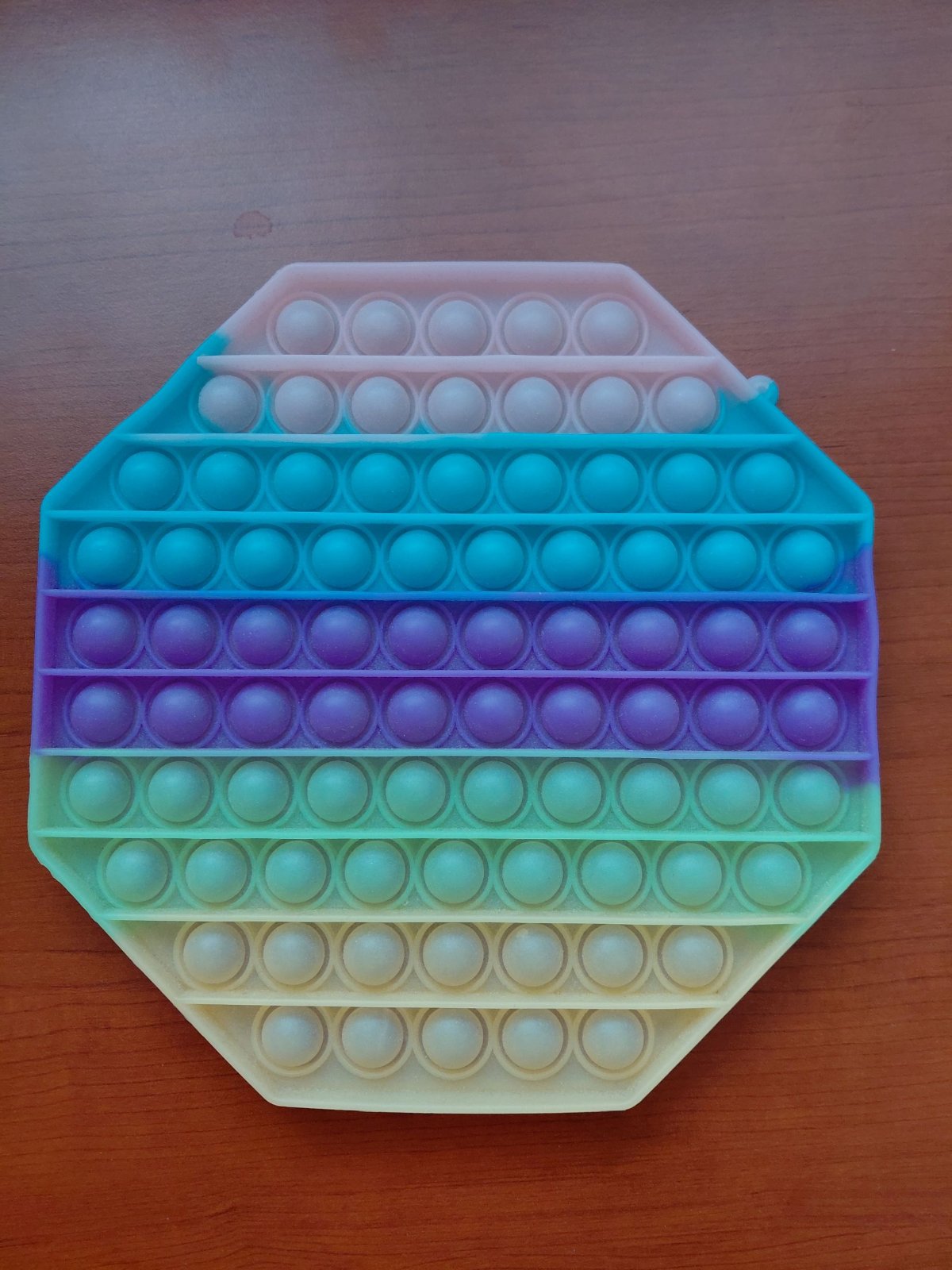 Krásny, ako nový, veľký, v tme svietiaci antistresový pop it. Dá sa na ňom hrať aj jednoduchá spoločenská hra. Rozmery nafotené. Cena: 4,9 €.
