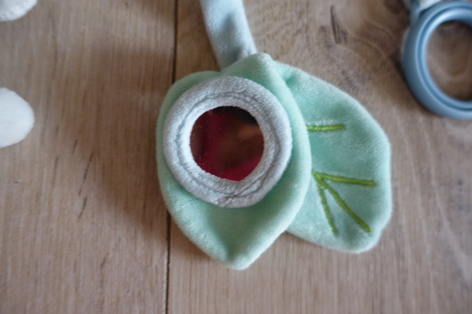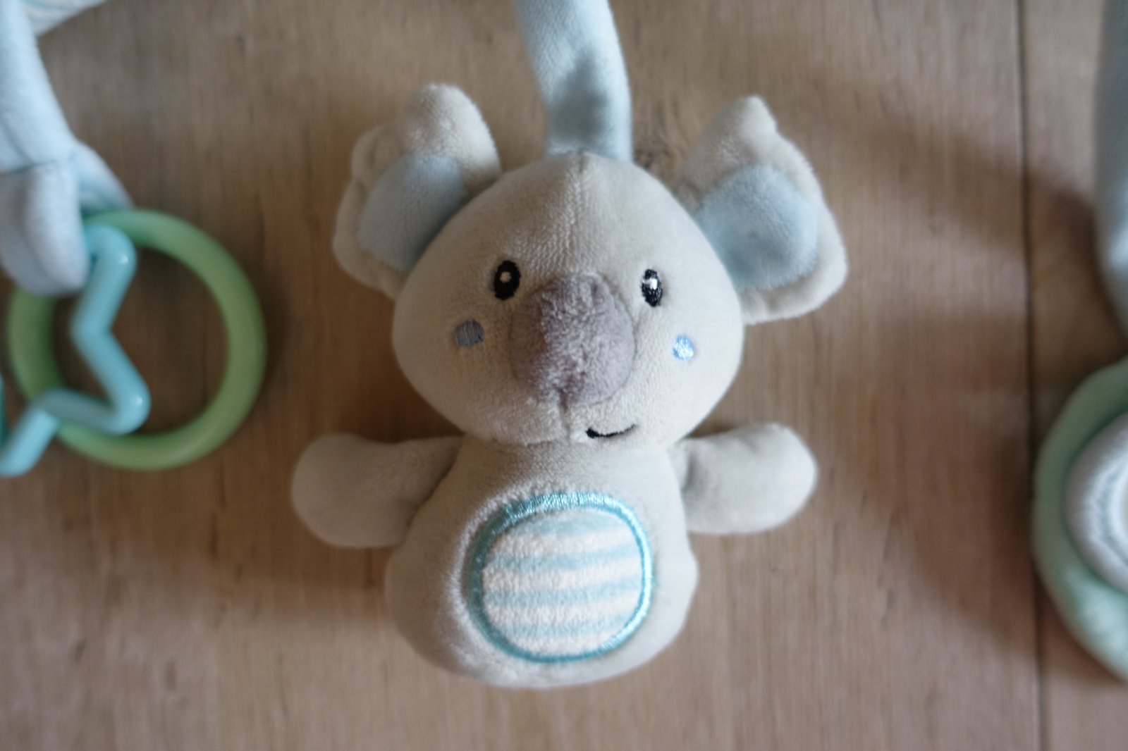 Hviezdička a kruh sú zaujímavé tvary, ktoré nabádajú k tomu, aby sa dieťa vytiahlo a chcelo sa dotknúť hračky, koala hŕka, zrkadlo umiestnené v liste dieťatku umožní skontrolovať svoj vlastný odraz (sem tam sa nájde na ňom zopár škrabančekov, ale len také mini vlásočničky, nič výrazné). Za ním lístok šuští. Šuštivé prvky dieťa zaujmú a pritiahnu jeho pozornosť.