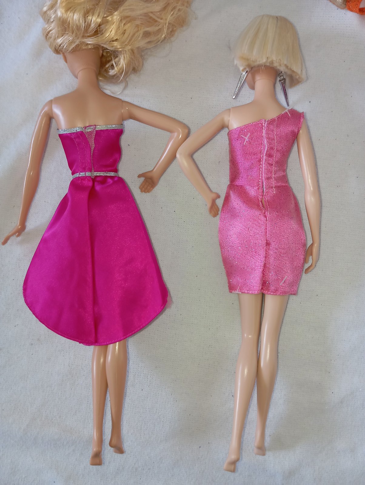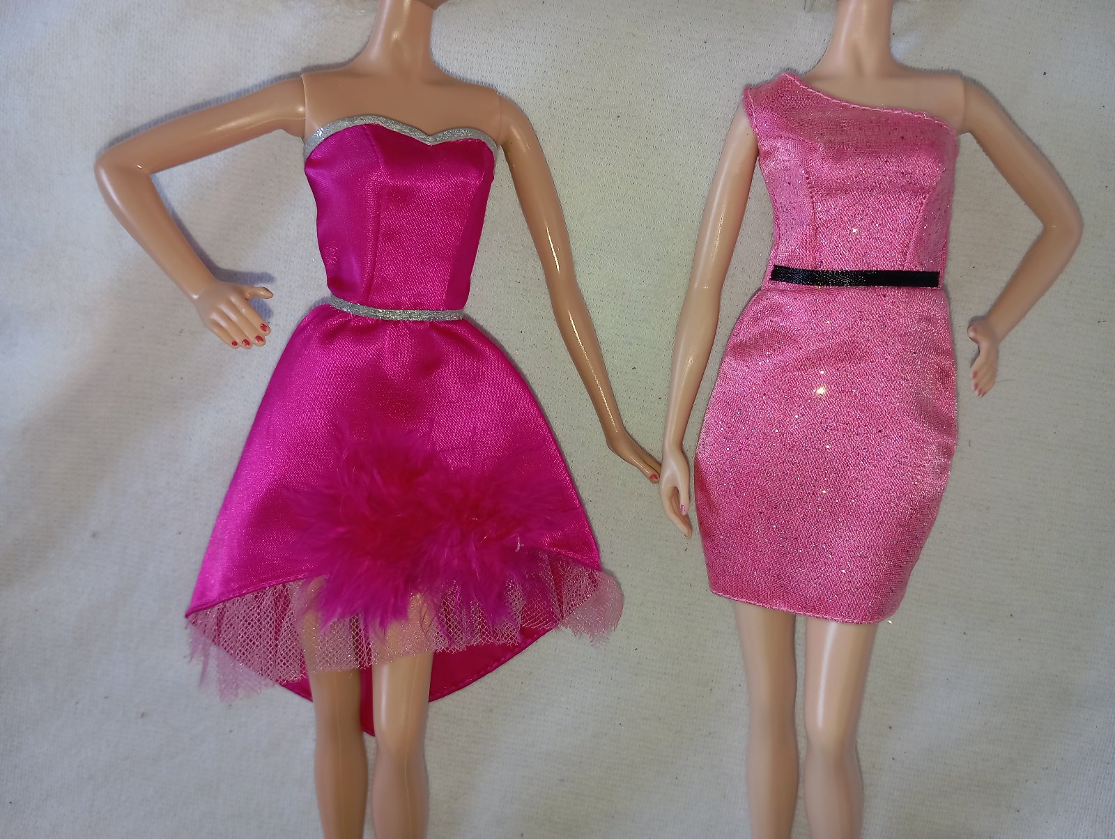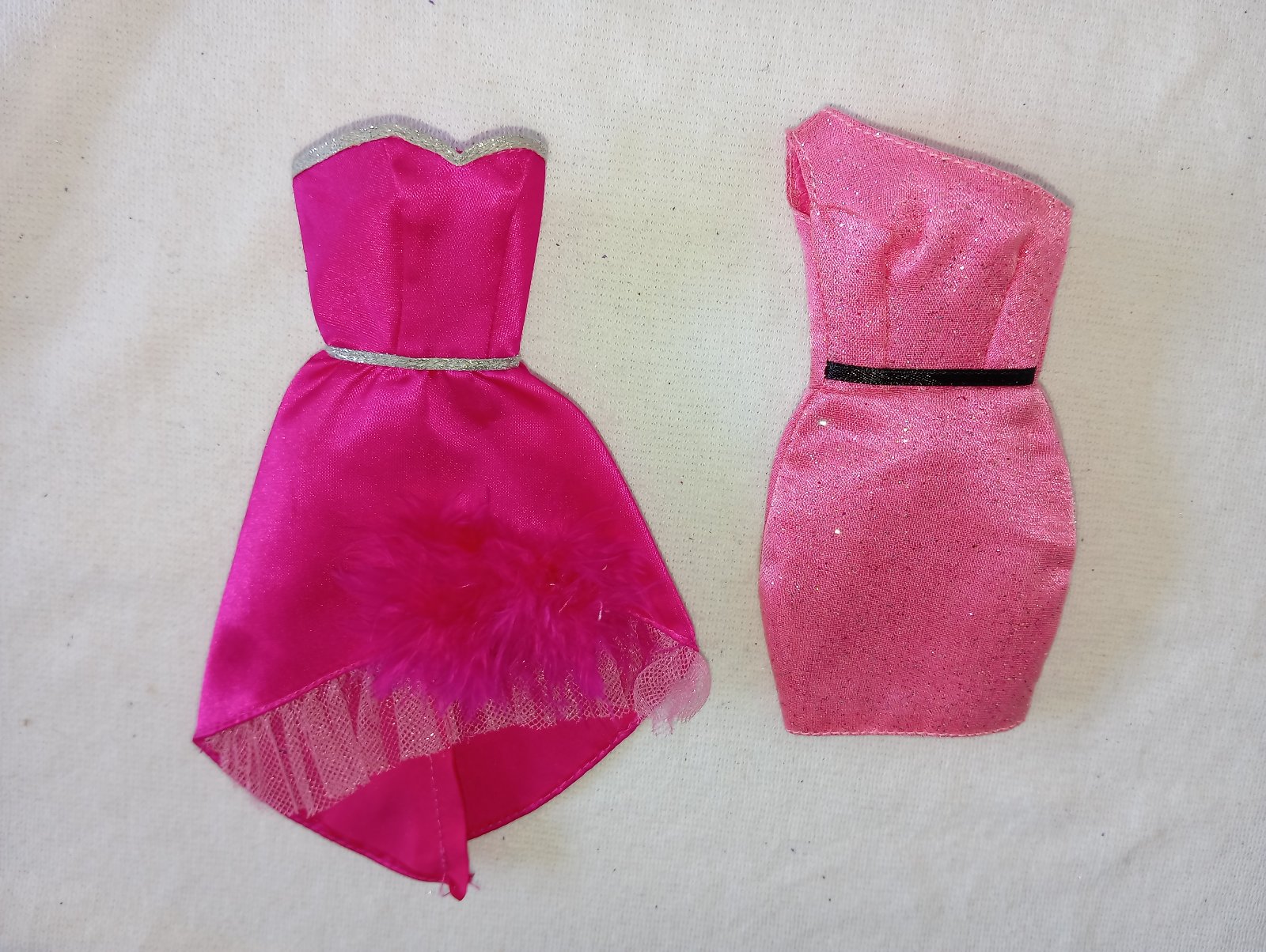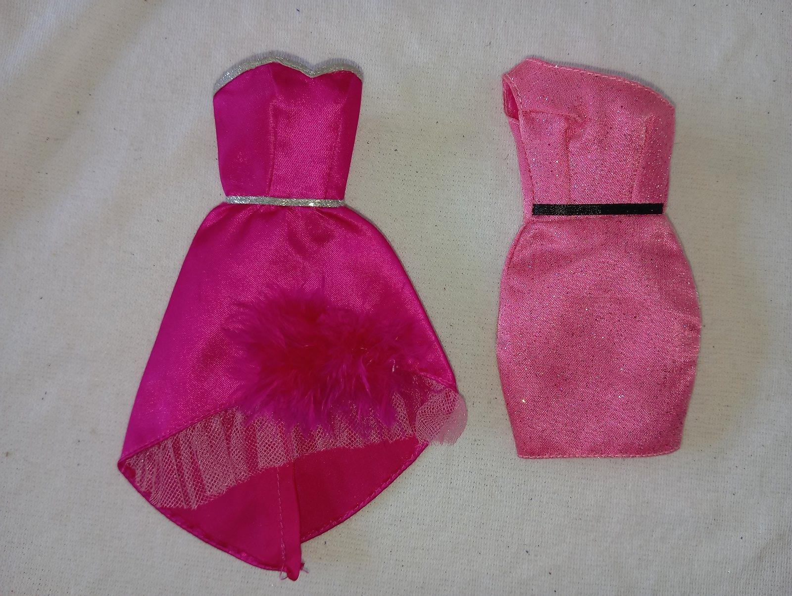 1. ružové šaty so strieborným opaskom. Sú vhodné pre Barbie Model Muse alebo pre Barbie Skipper teenagerku (vysokú asi 26cm). 25€