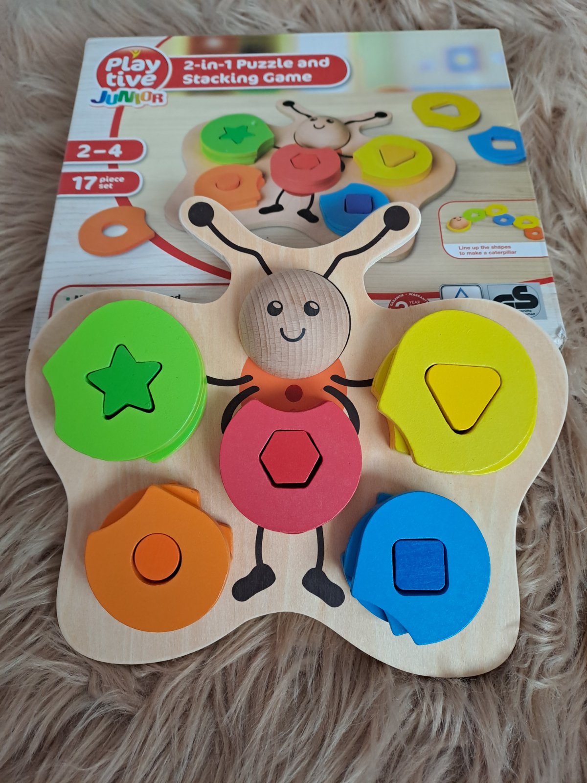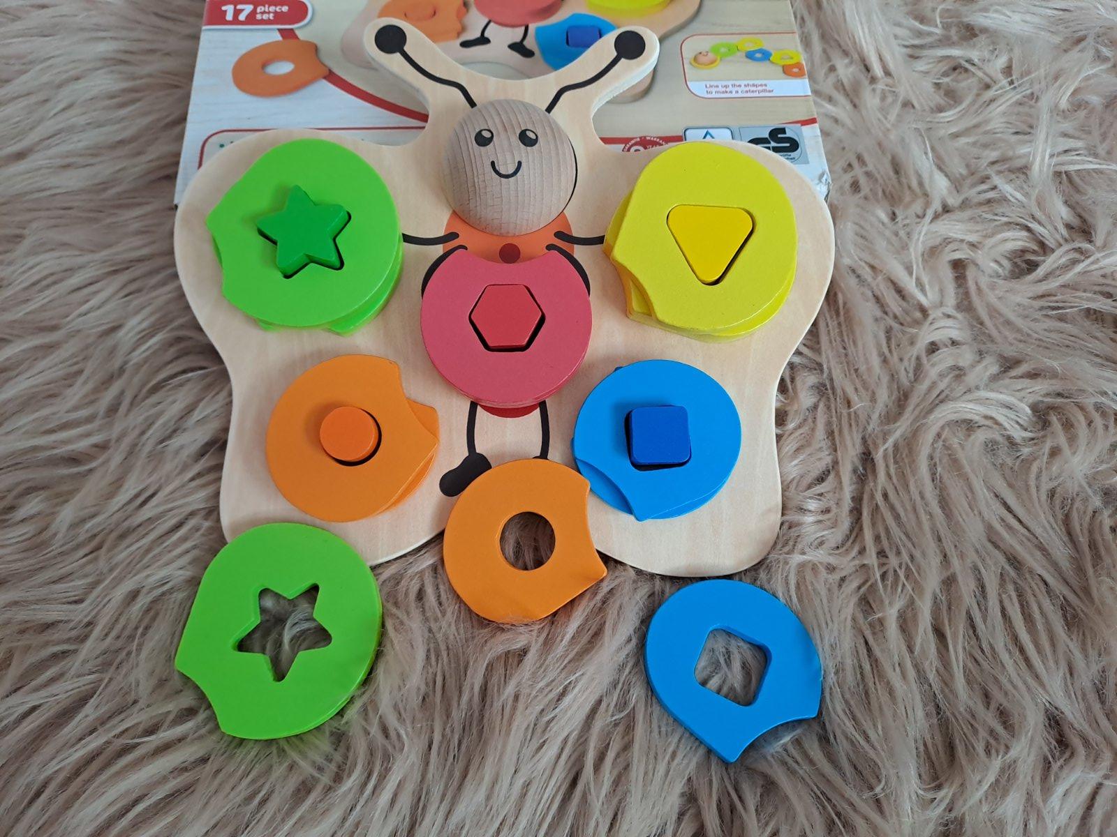 Hračka ponúka zoradenie pestrofarebných drevených tvarov na 5 kolíkov po 3ks. Skvelý spôsob, ako sa naučiť farby, počítať a podporiť rozpoznávanie tvarov. Každý drevený tvar sa zasúva na kolíkovanú základnú dosku.