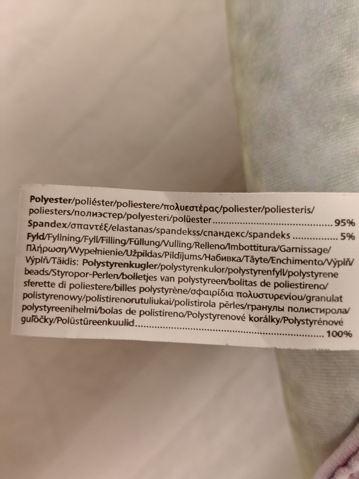 príjemný kvalitný materiál, 95 % polyester, 5 % elastan, výplň polystyrénové gulôčky,