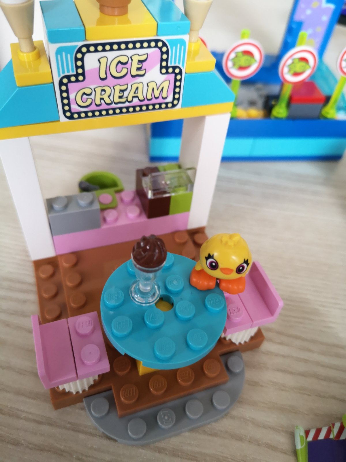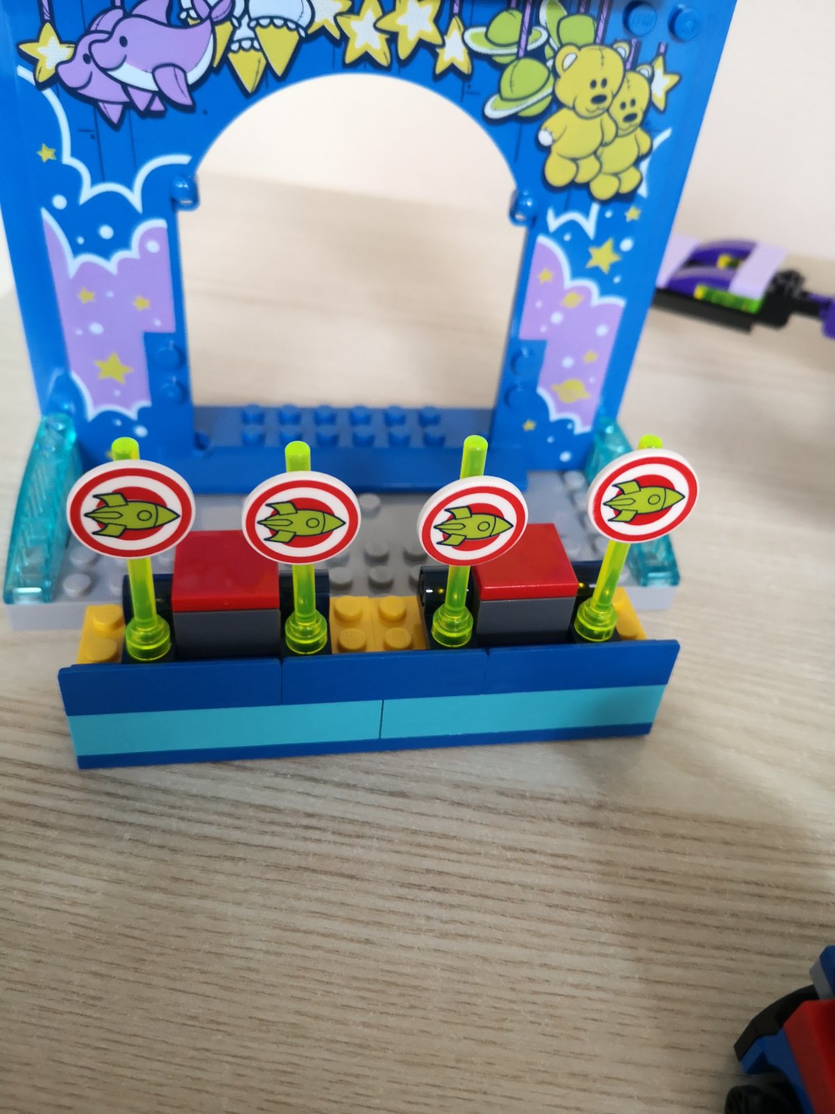 ~ set obsahuje strelnicu, funkčné delo, pohyblivý kolotoč, ktorý má tvar veľkej fialovej chobotnice, autíčka a stánok so zmrzlinou a rôzne zábavné doplnky
