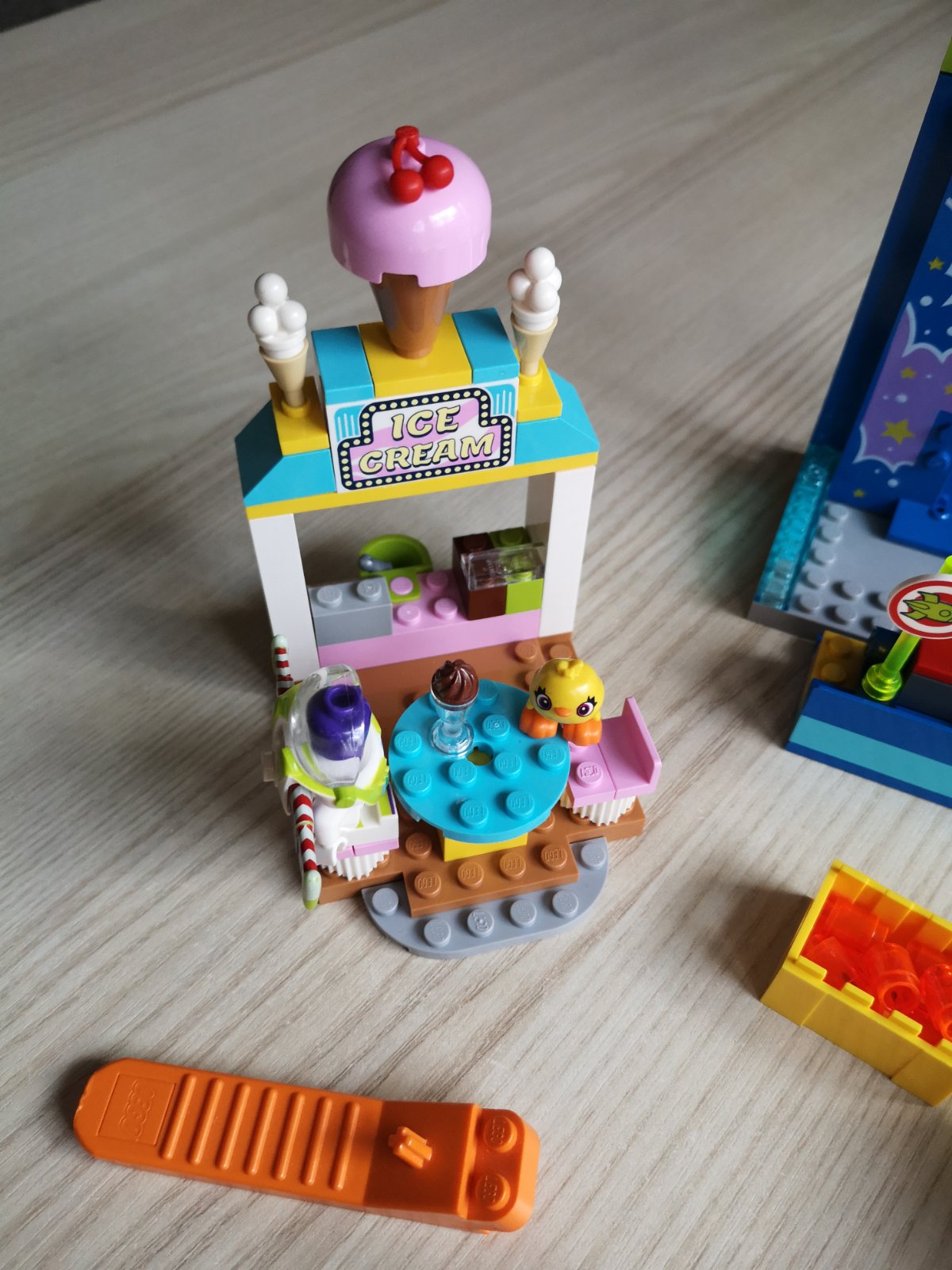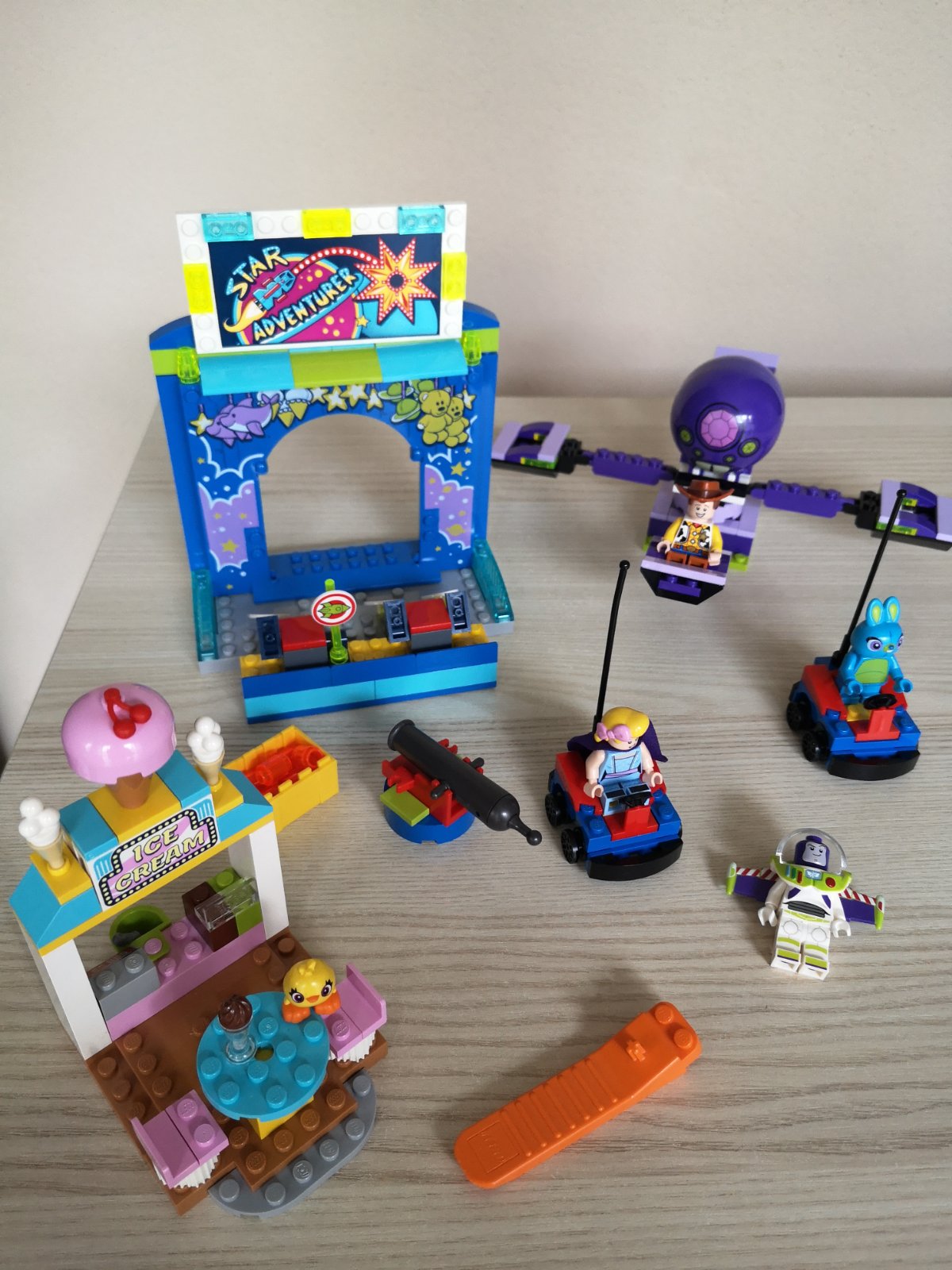 ~ nádherné Lego, ktorého súčasťou sú minifigúrky Buzza, Woodyho, Bo Peepa, Bunnyho a Duckyho)