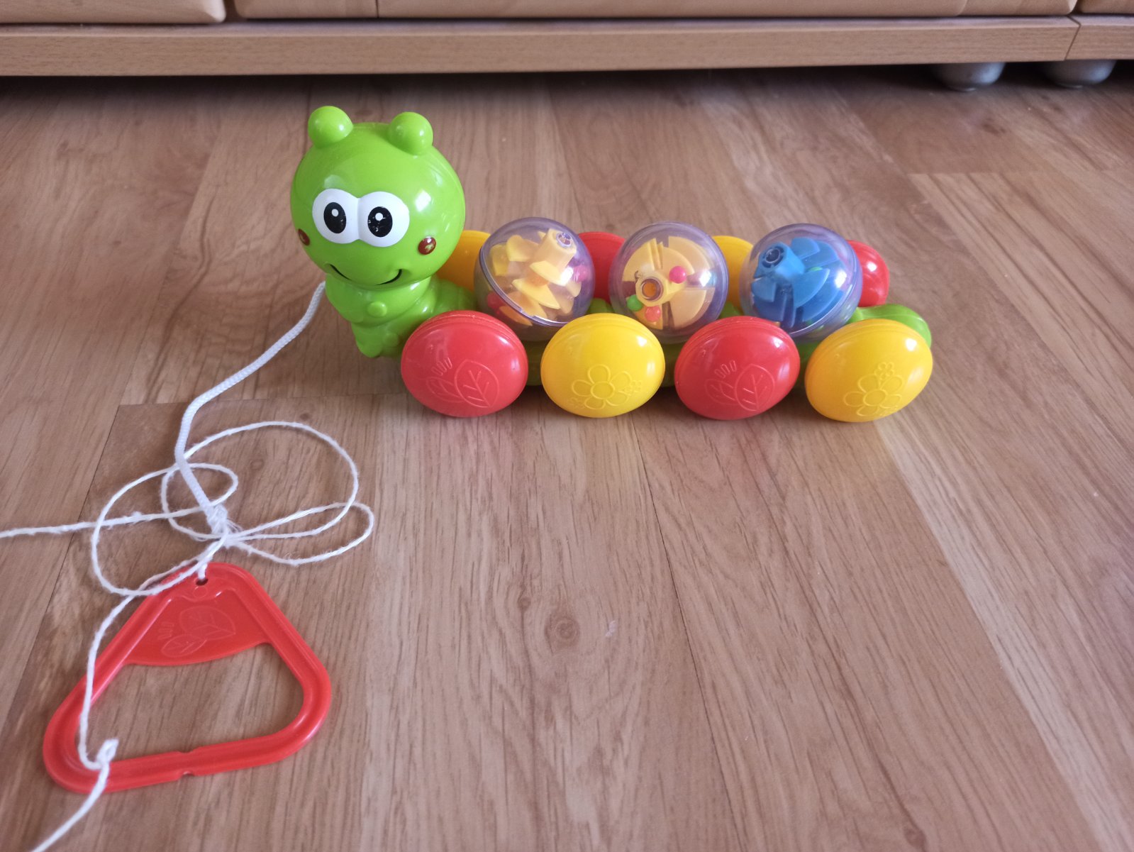 Vo veľmi dobrom stave, bez poškodení, na vrchu sú 3 guličky, ktoré sa točia pri ťahaní húsenice.