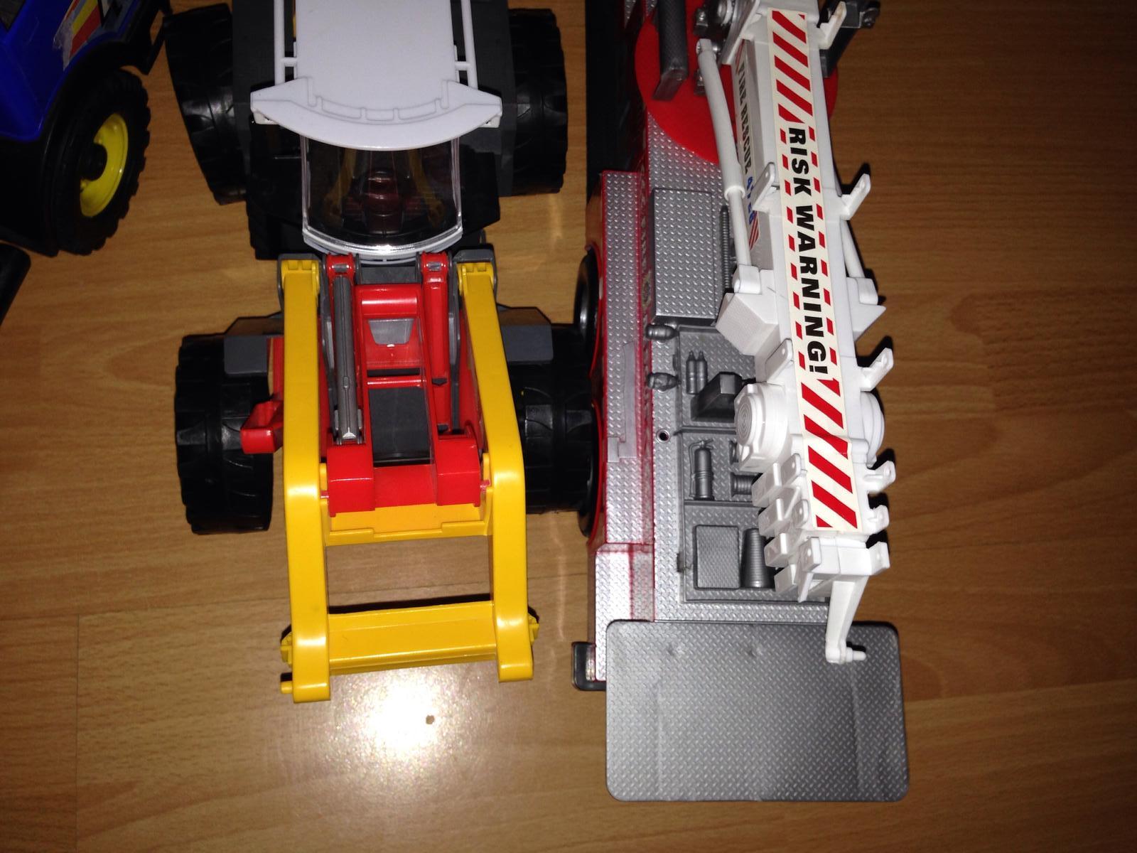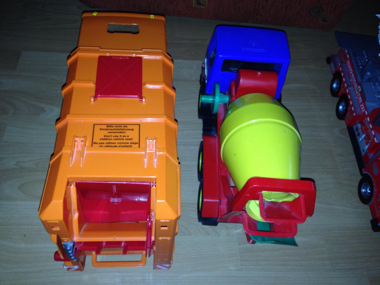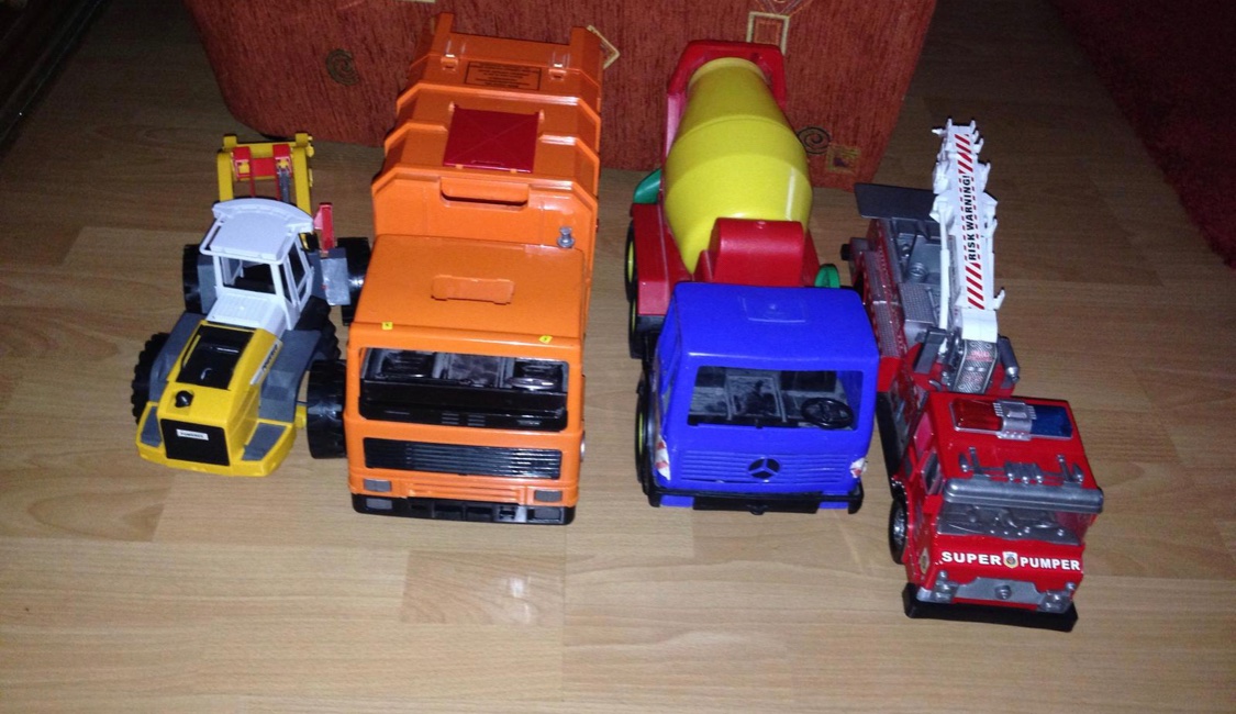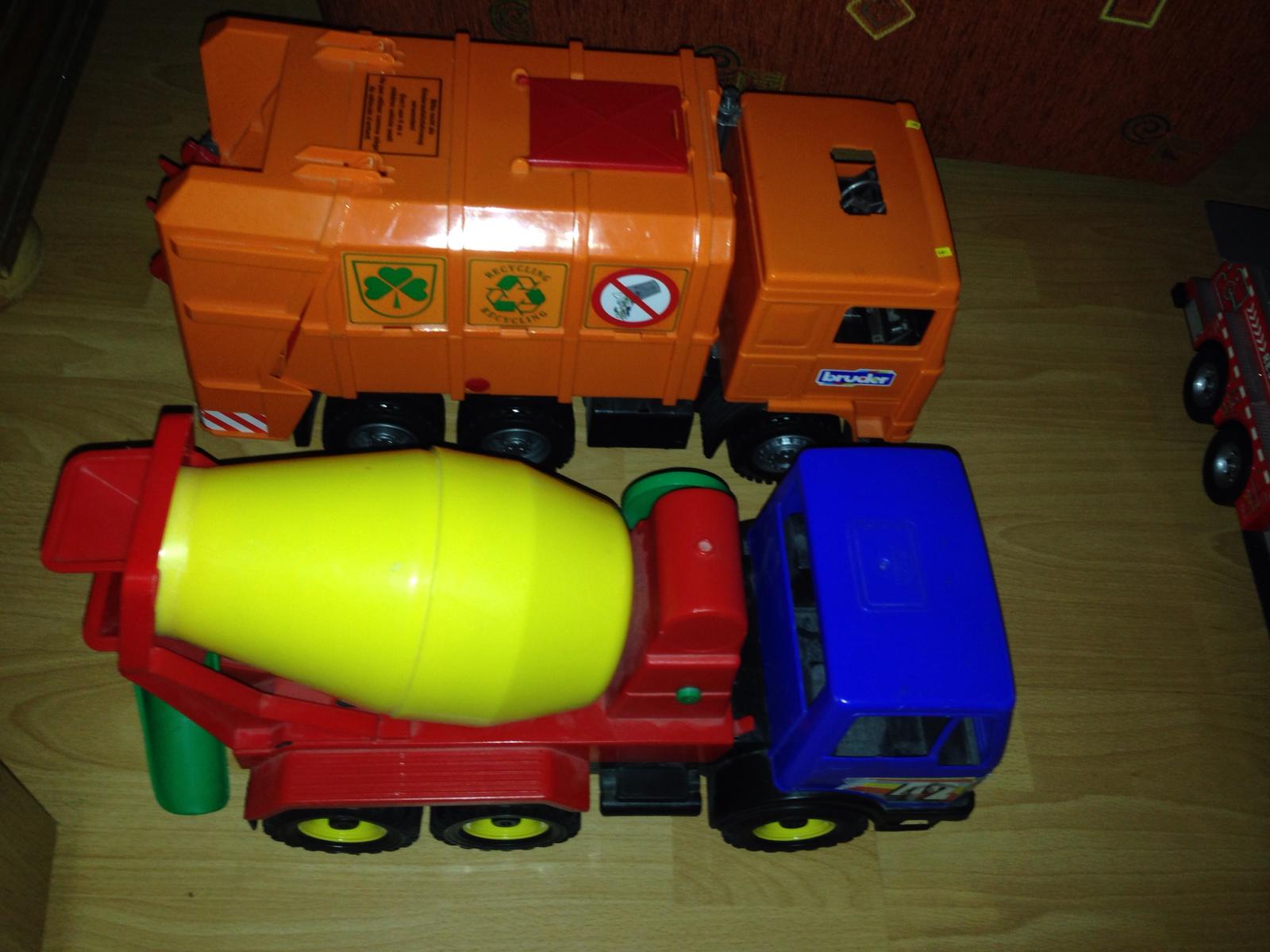 Predám auta vetsie používané ale este ok poslúžia traktor 1vy ma uz zlomenú vidlicu ale určite sa dá zabaviť aj bez toho cena5e, 35cm 2he smetiarske auto je pekne veľké len vzadu sa odlomolo s ciplikou co drzý zadnú čas ale ked sa dá tak to celkom drží cena7e,,3tie ok miesacka8e poziarnicke auto chyba rebrík ale ináč super dlzka49cm8e ..Pista podľa tarify miešačka pívn