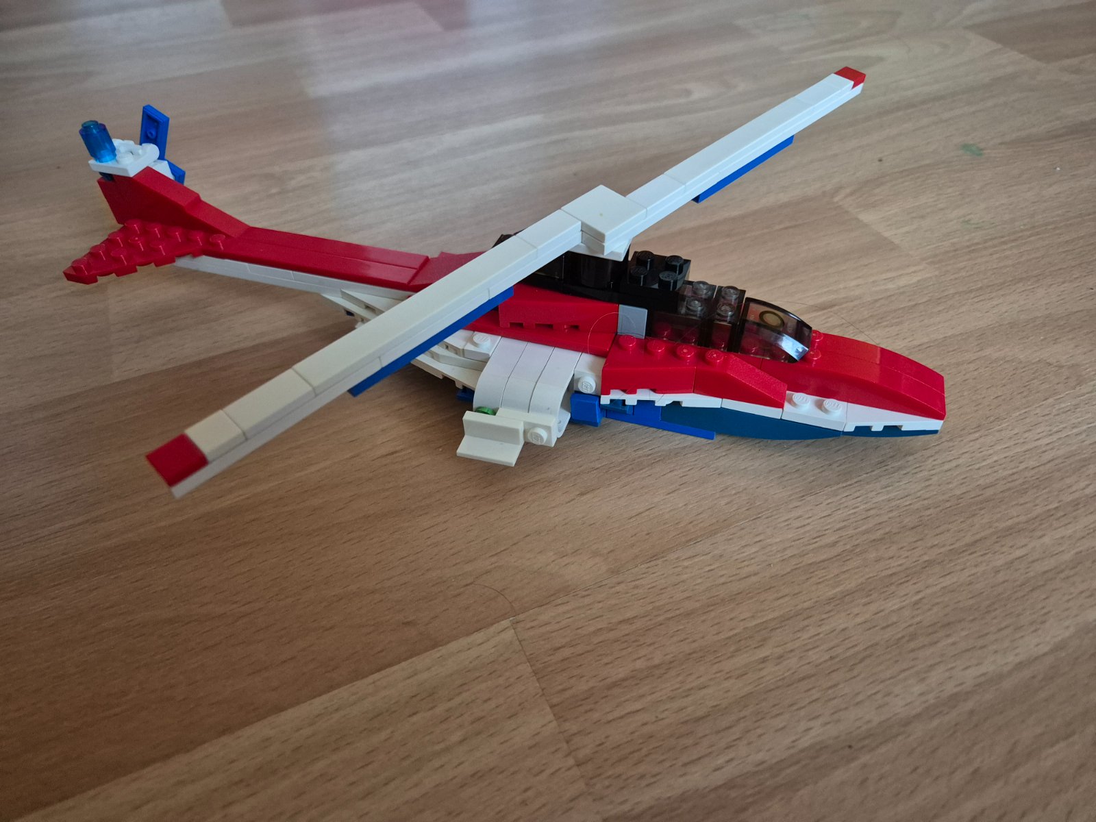Lego je kompletné. Ide o staršie lego z roku 2007, niektoré modré dieliky sú zazltnute. Na fotkách sú všetky tri možnosti, čo sa z Lega dá postaviť.