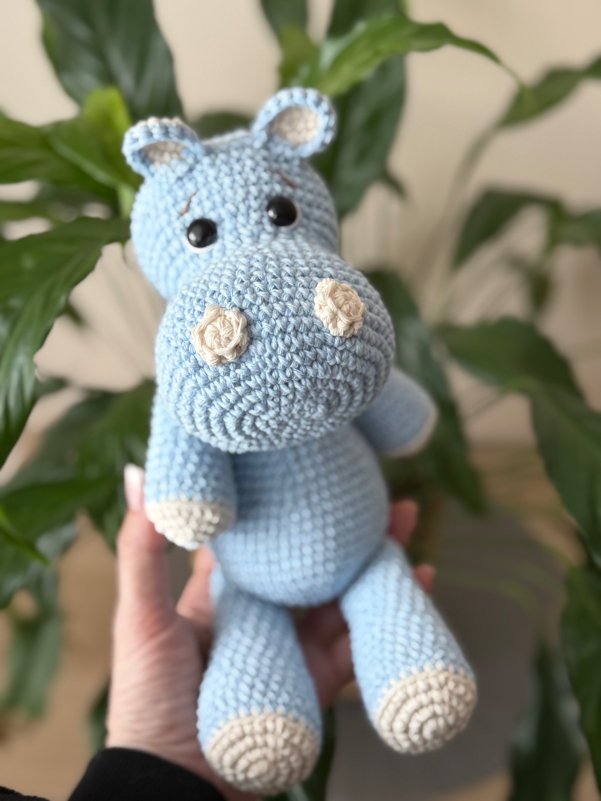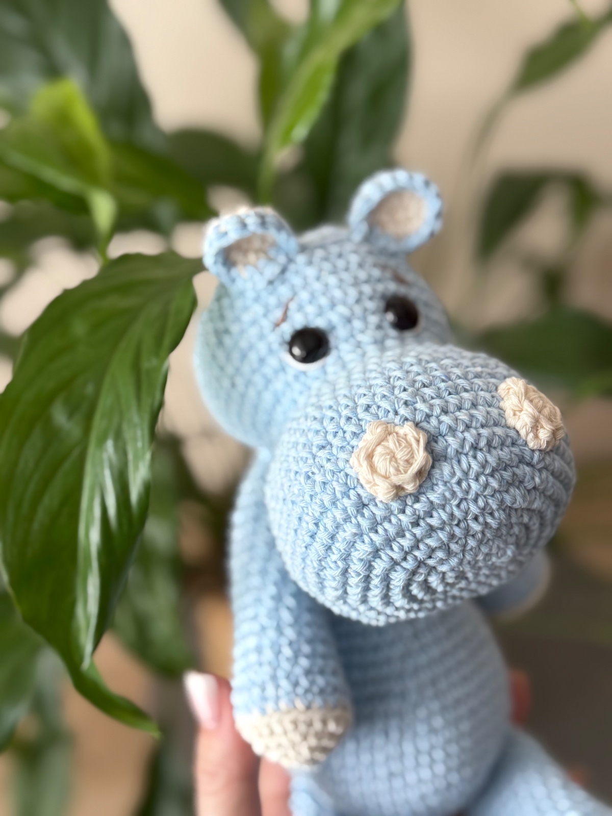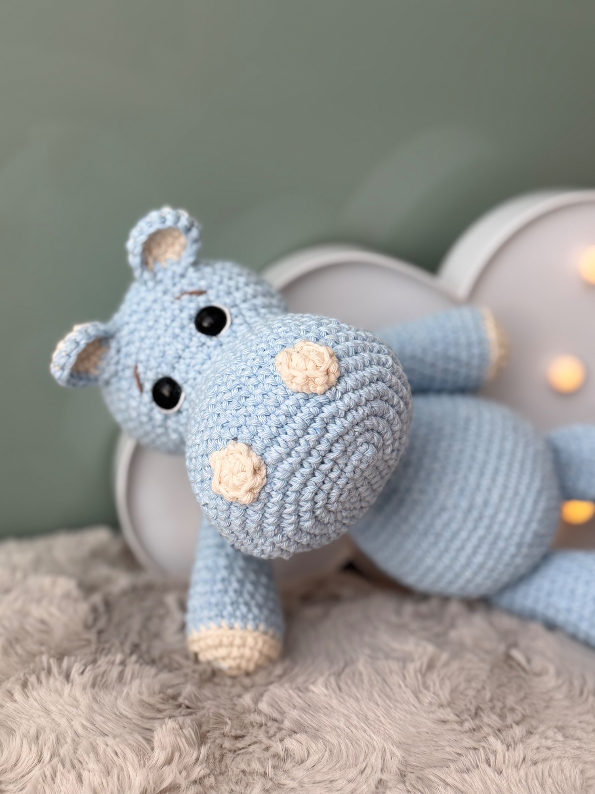 Hačkovaný hrošík v nebíčkovo modrej farbe. Má aj chvostík.