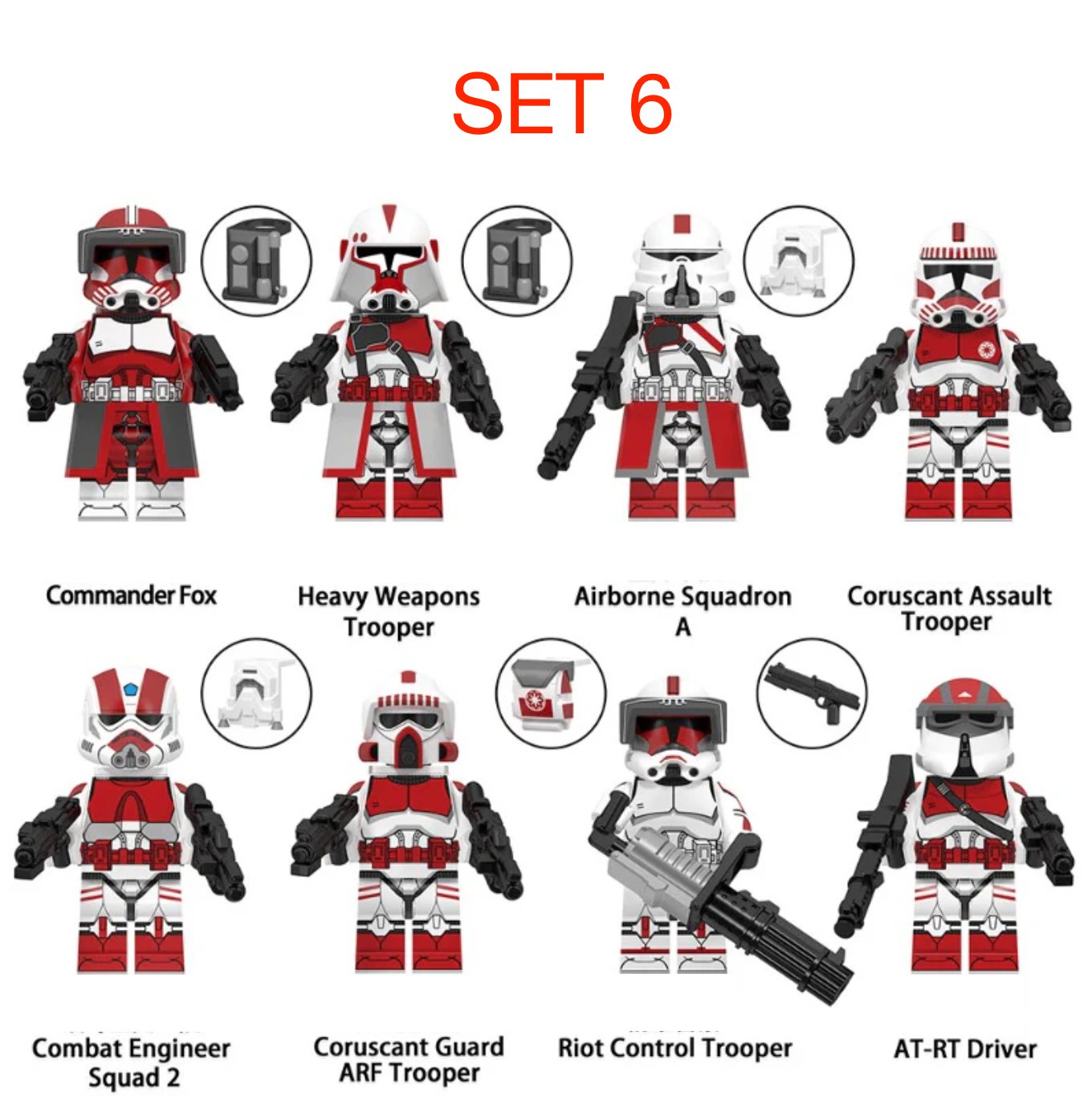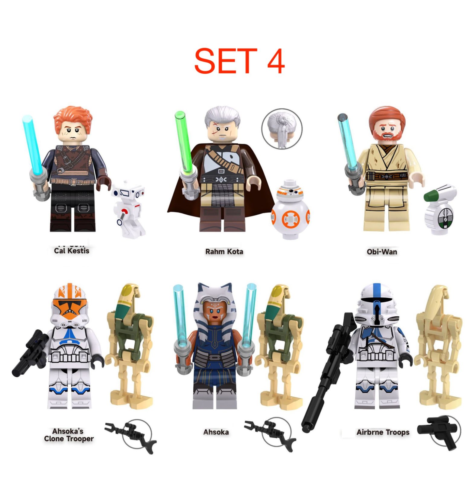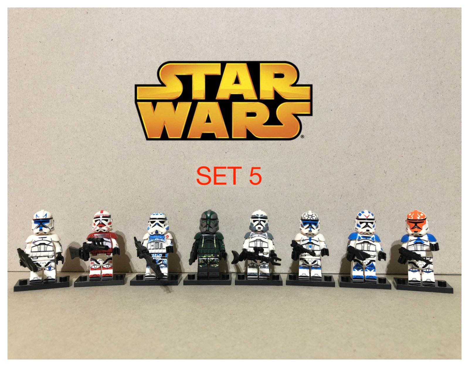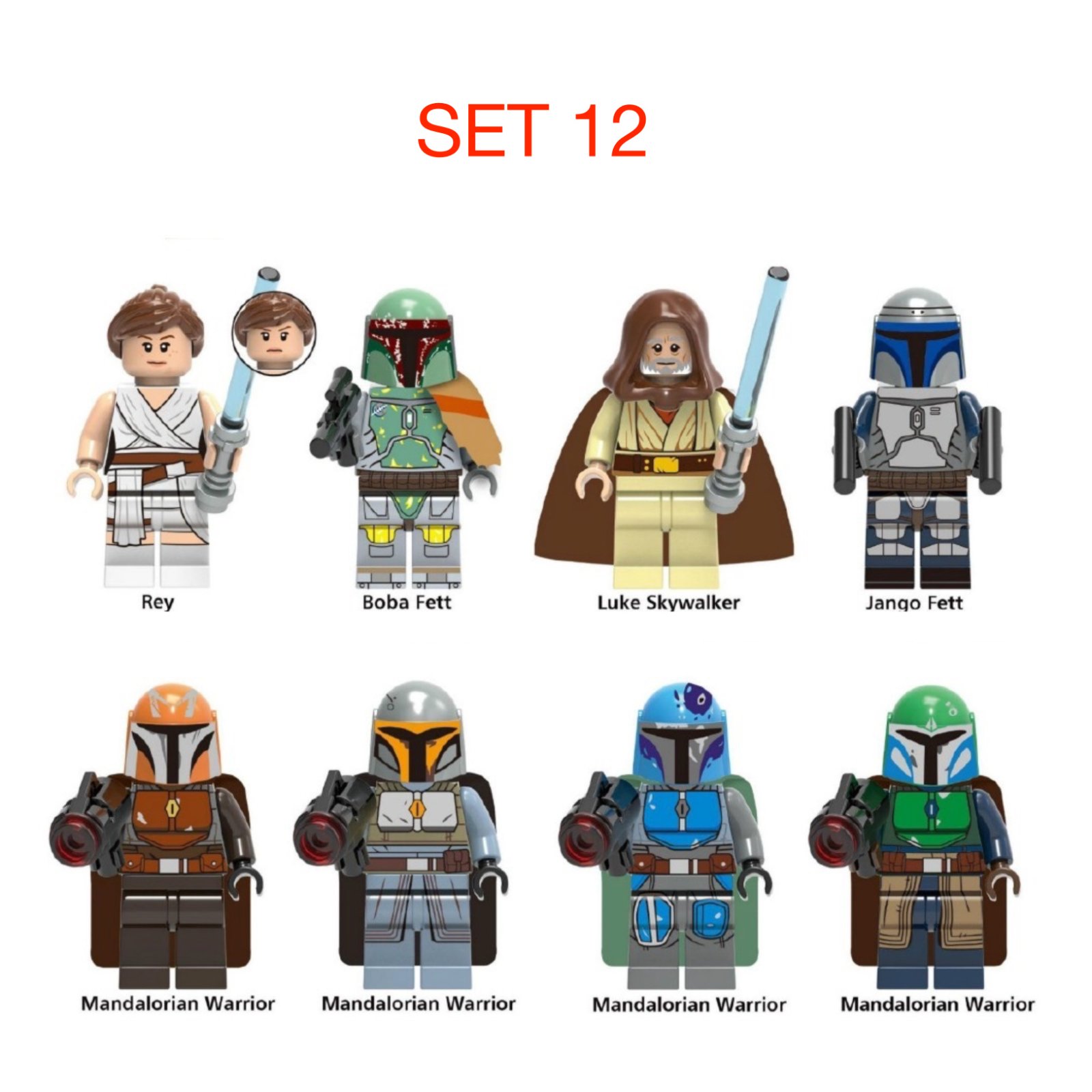 Predám obľúbené figúrky (postavičky, panáčikovia) Star Wars typ lego. Jedná sa o sadu 8 figúrok na obrázku vrátane všetkého príslušenstva, ktoré vidíte a uvedená cena je za celú sadu. Sú nové a zabalené, pasujú k legu - typ lego. Veľkosť figúrok je štandardná, teda 45 - 55 mm.