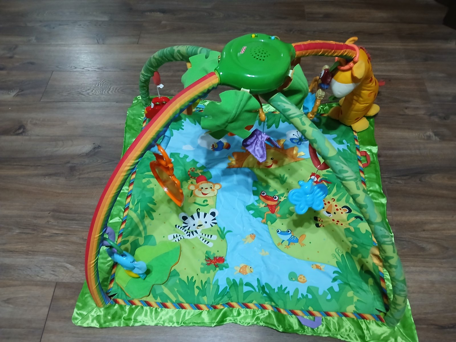 Plne funkčná hracia deka, sveti, vydáva zvuky. Na 2 miestach zeleného lemu poškodenie viď foto. Iba osobný odber