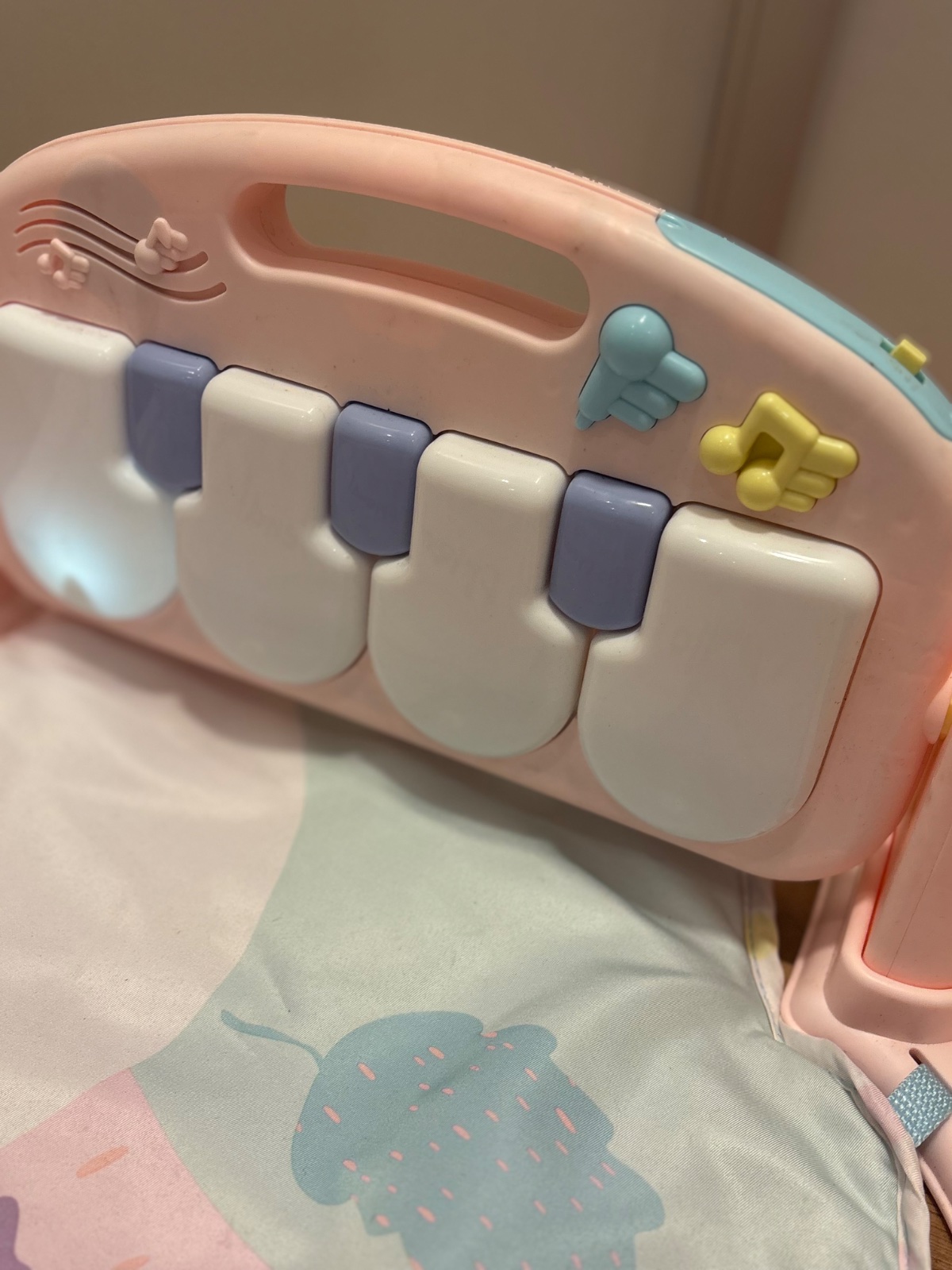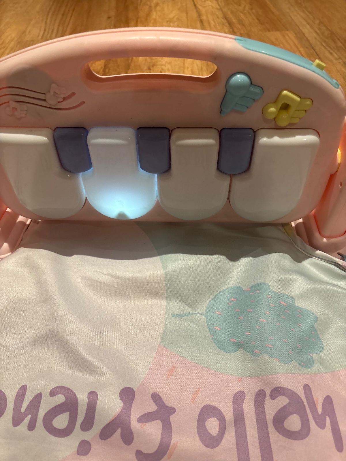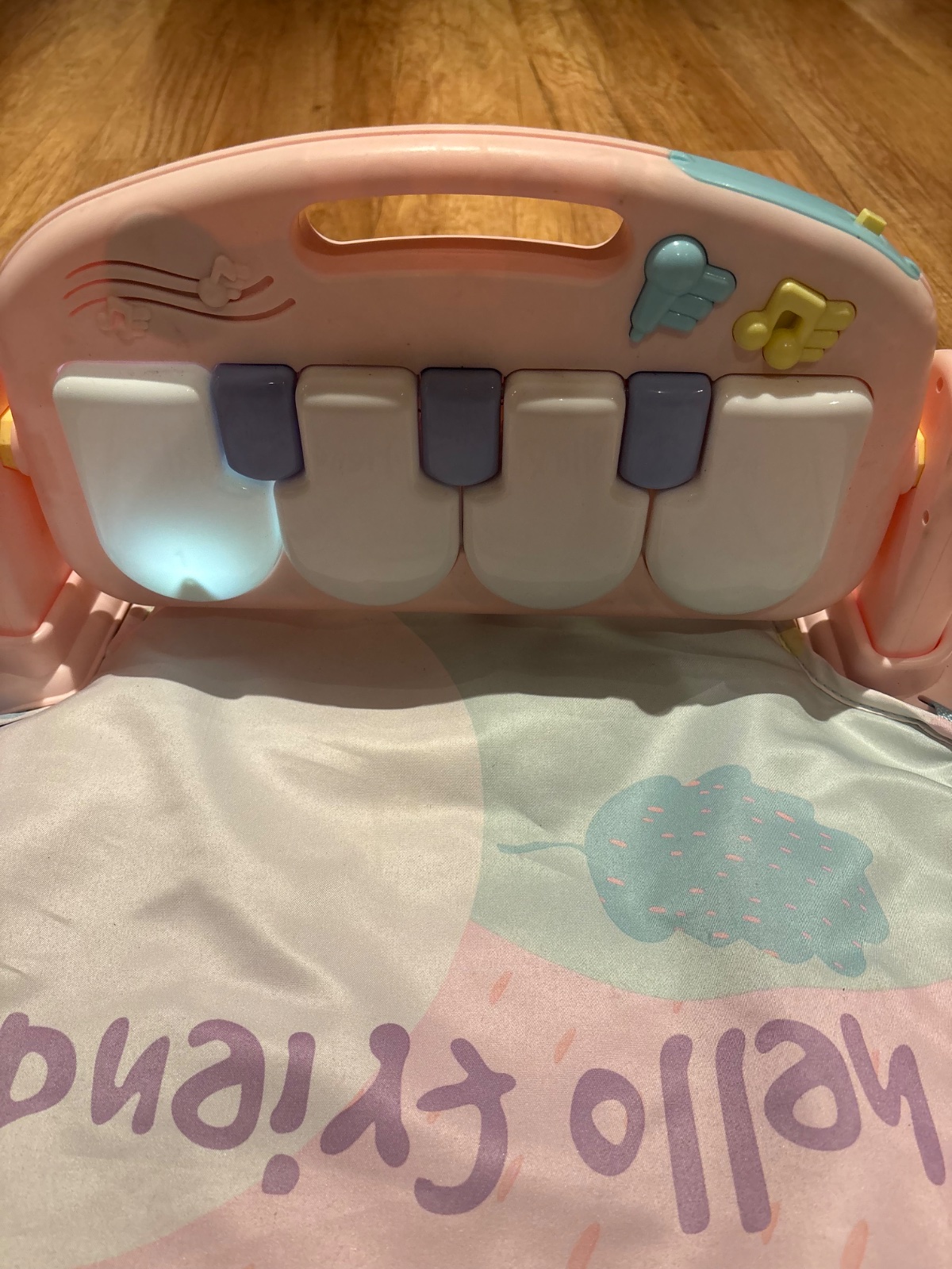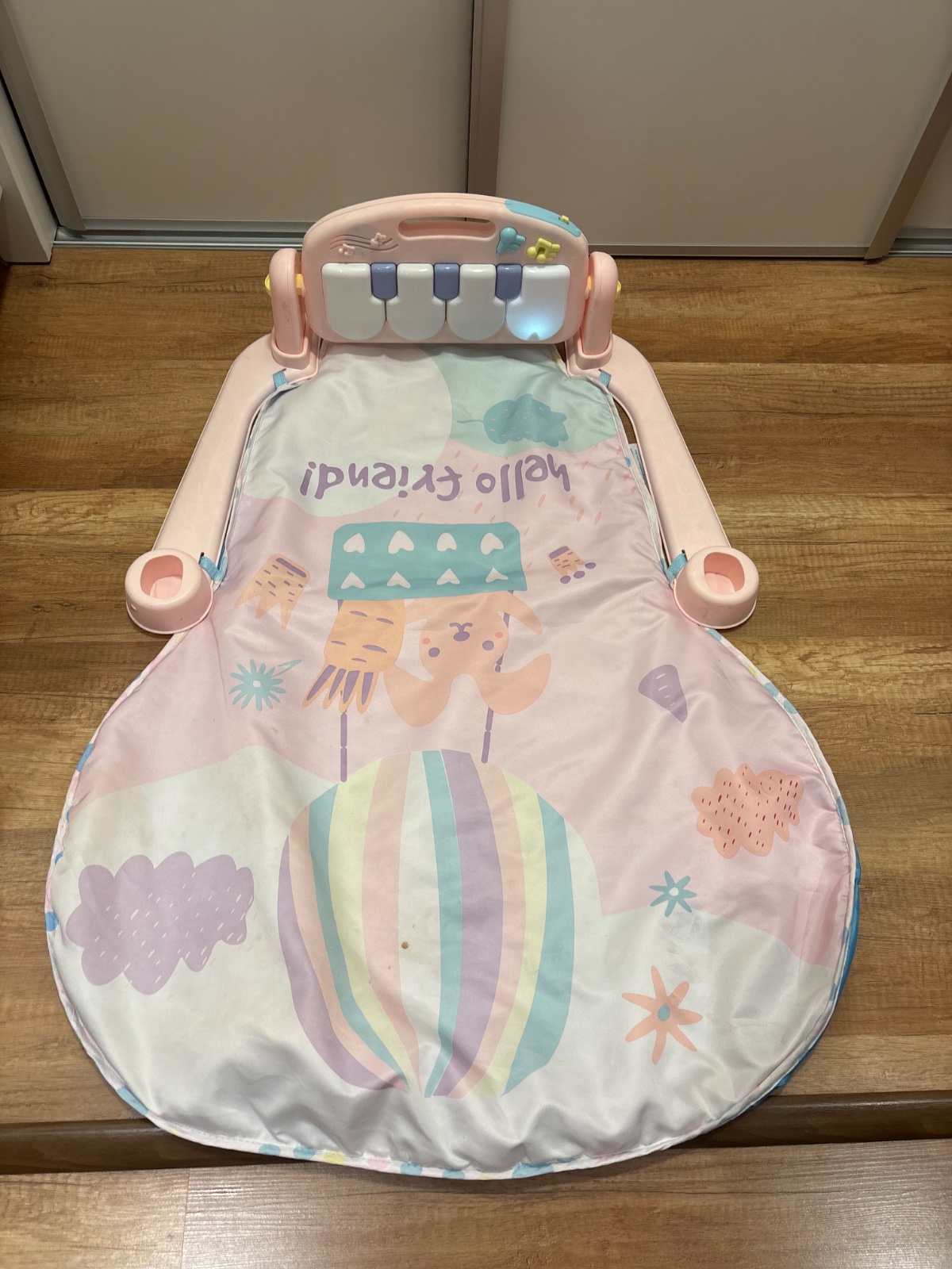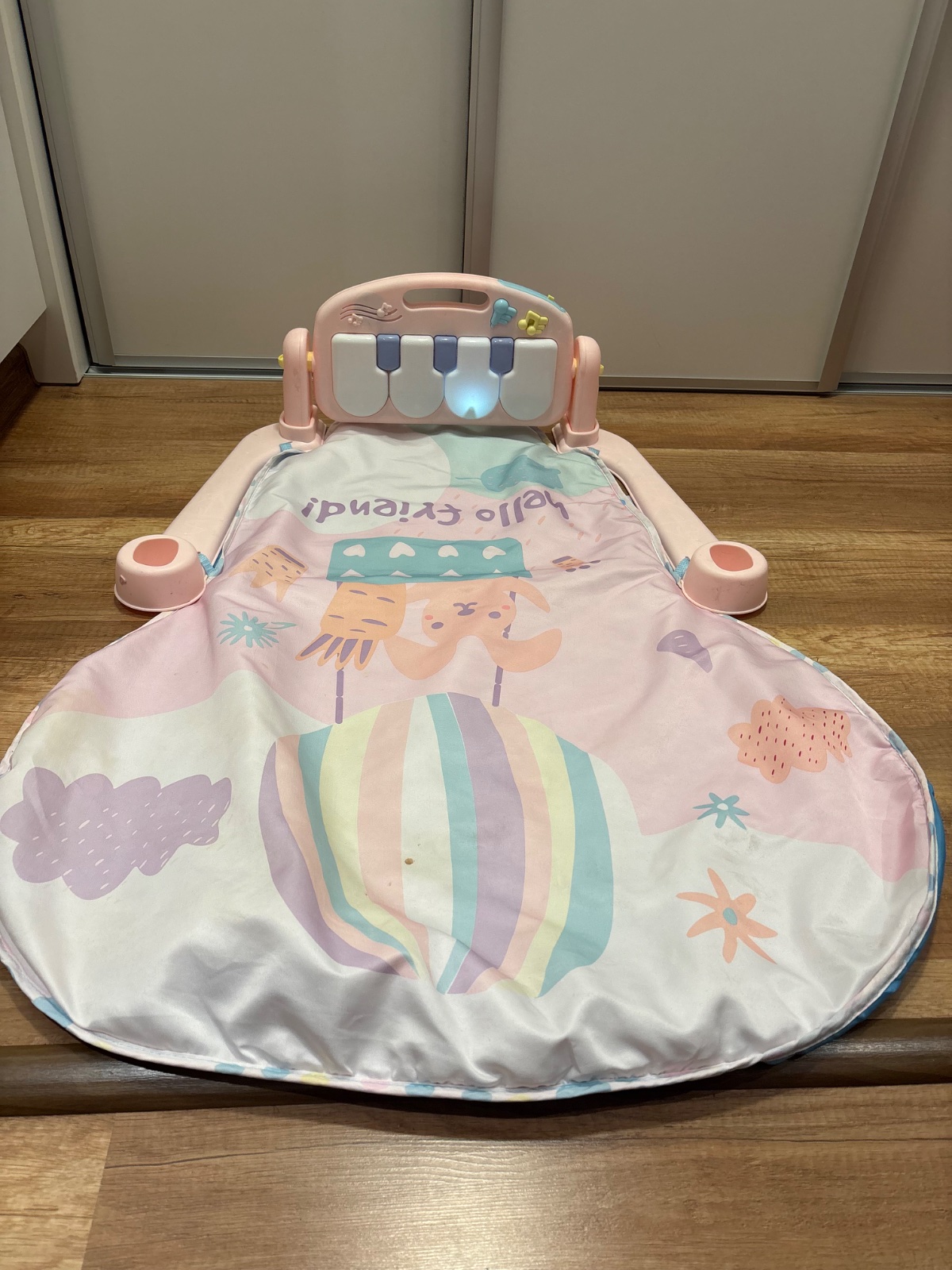 Predám za symbolickú cenu 8€ hraciu deku, podložku. Obsahuje klavír, ktorý hra rôzne melódie, zvuky a svieti. Hrazda ktorá bola ponad ku tomu nie je, preto cena symbolická.