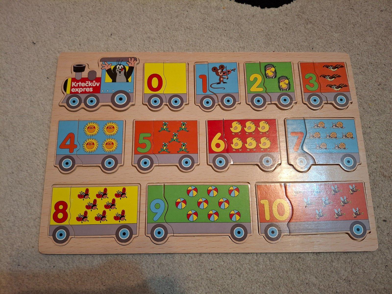 Drevena vkladacka vlak pocitanie s krtkom