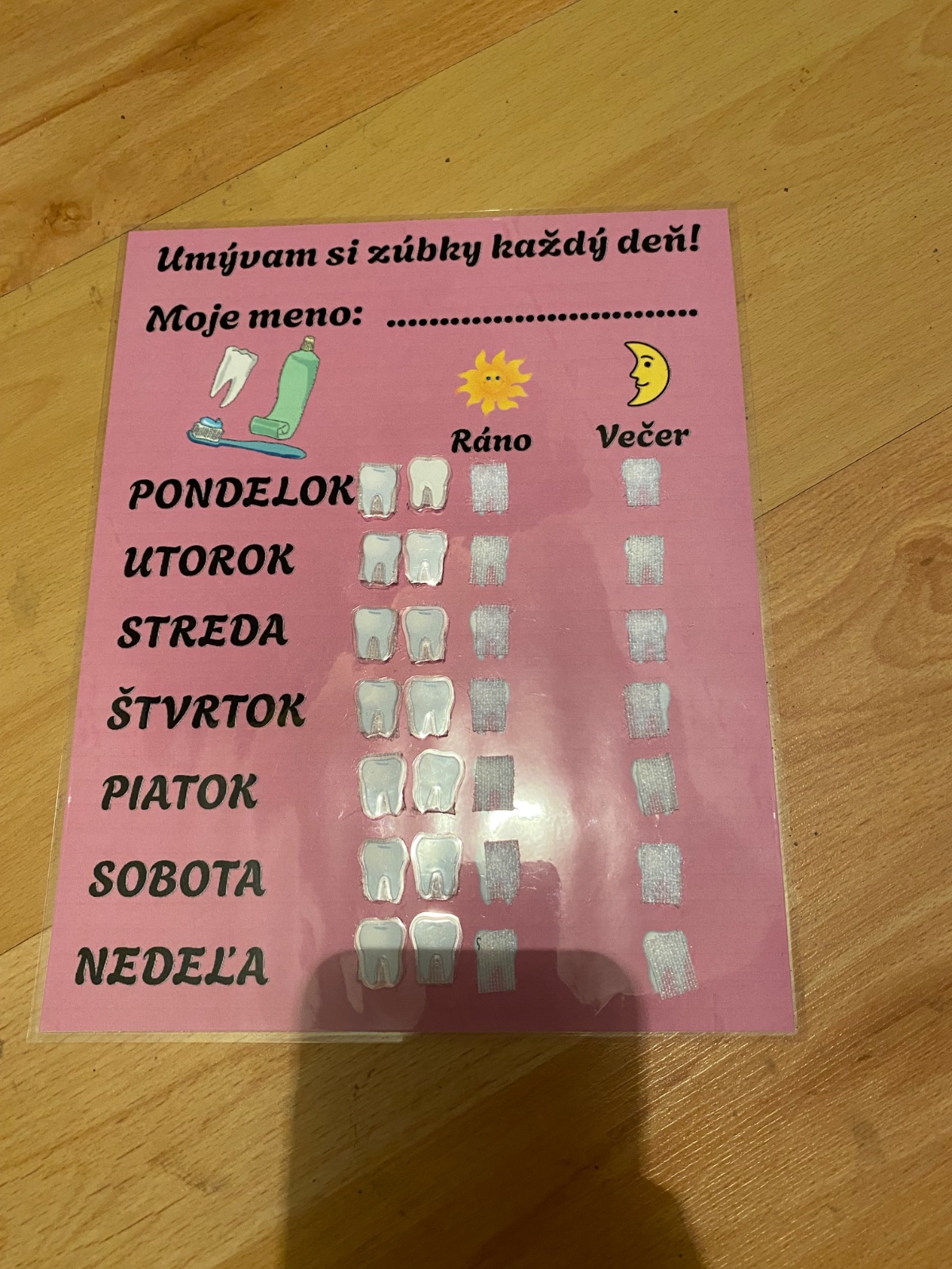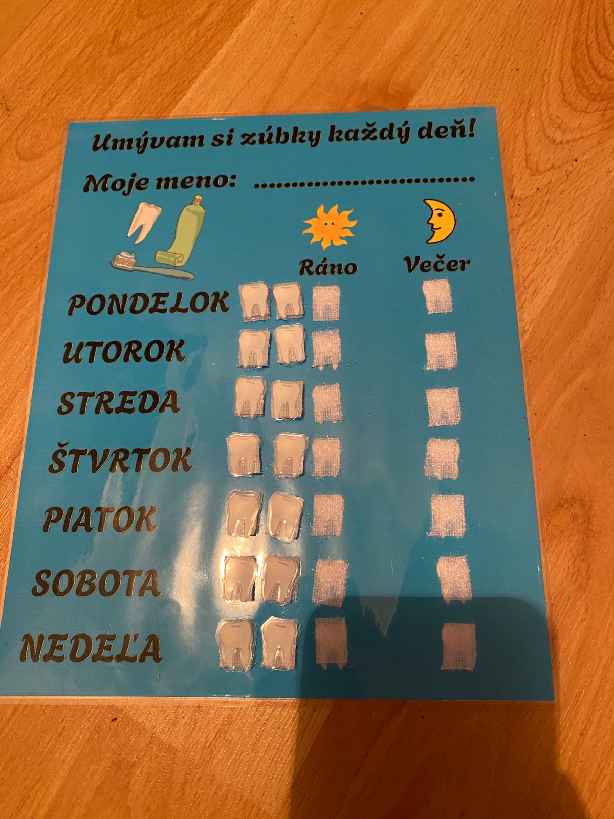 Montessori pomôcka pre deti na čistenie zúbkov.