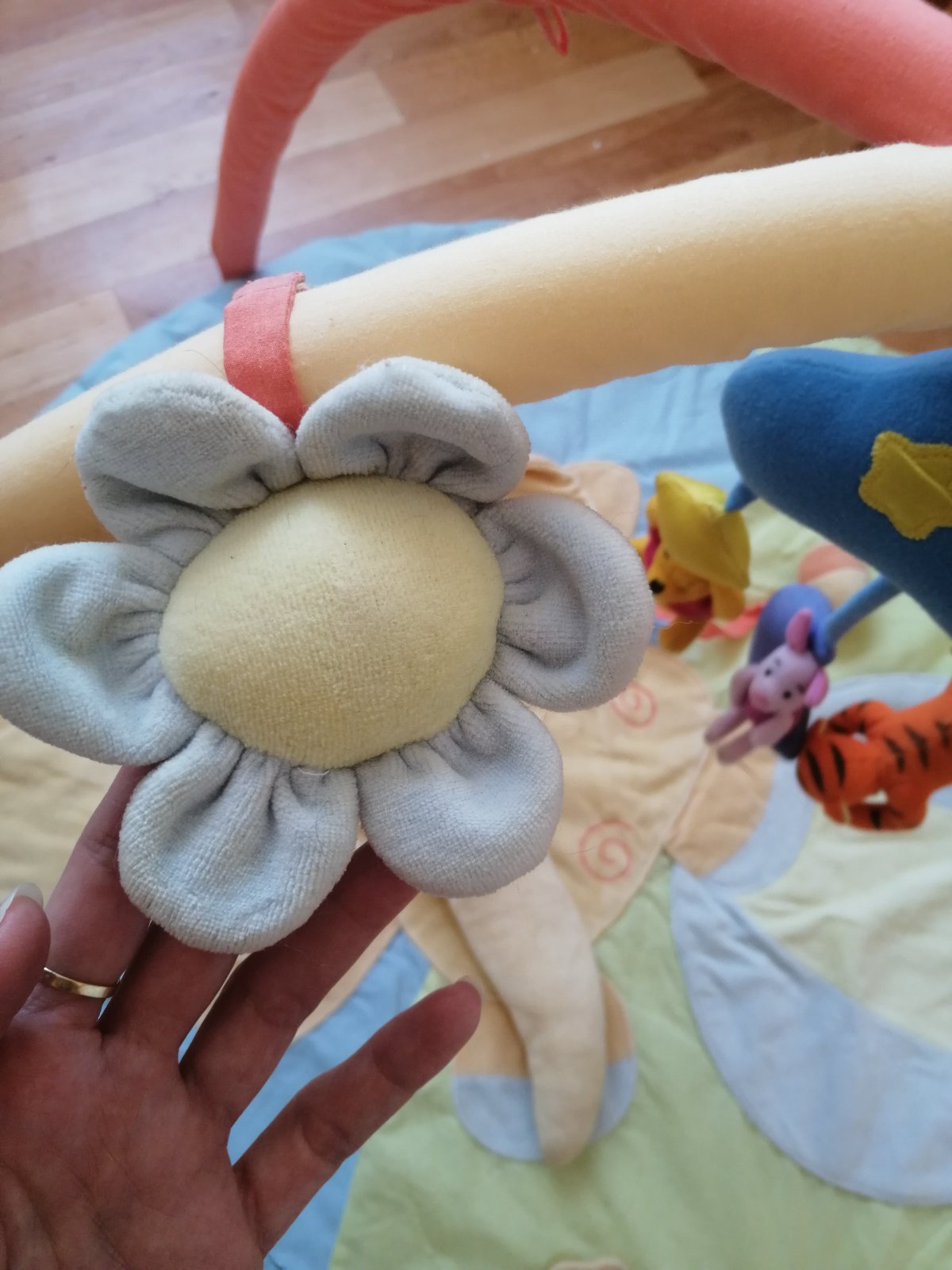 Je tam sustiace slonie ucho, piskatko v chobote, hrkálka v loptičke na šnúrke, ďalšie piskatko v loptičke...