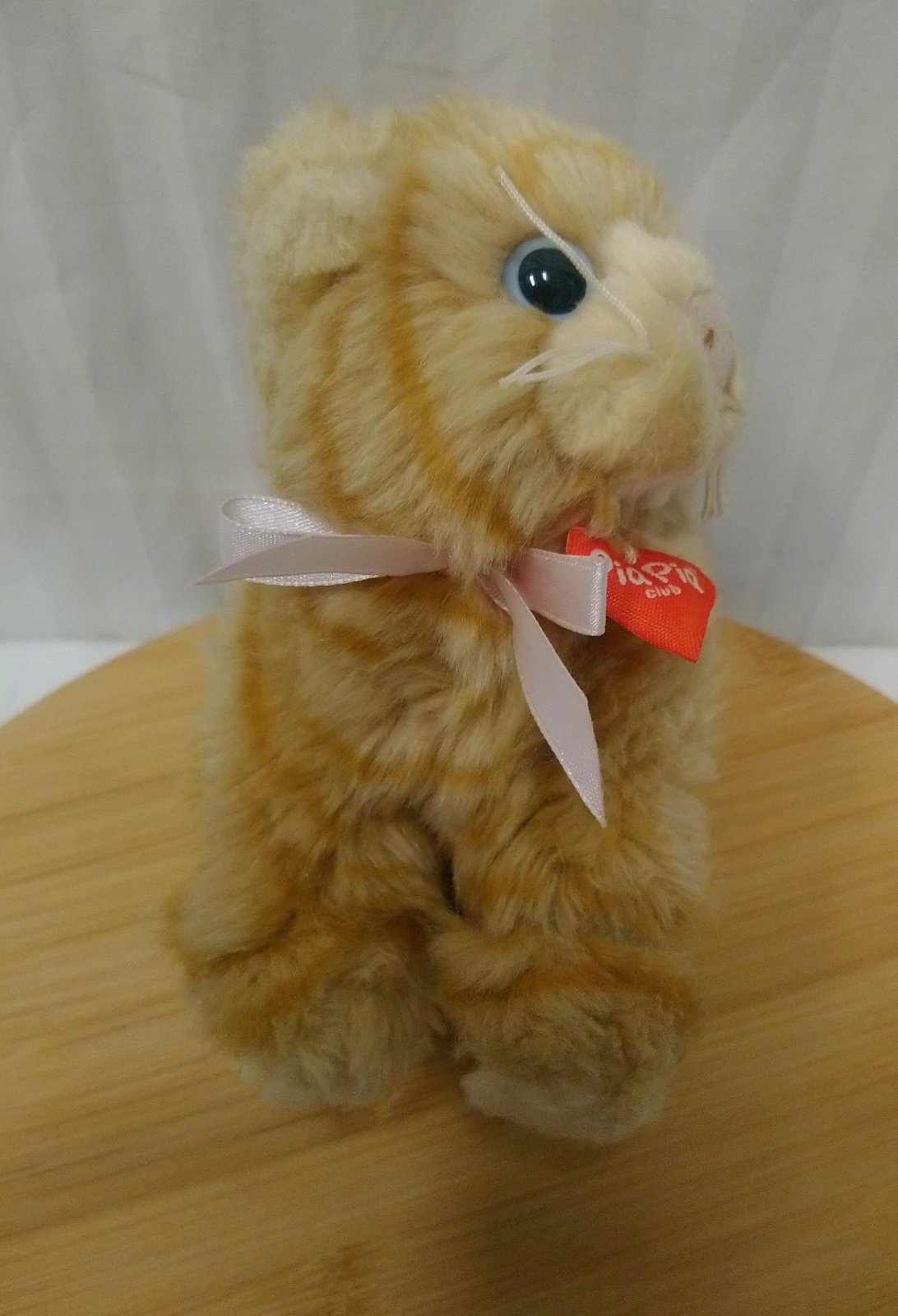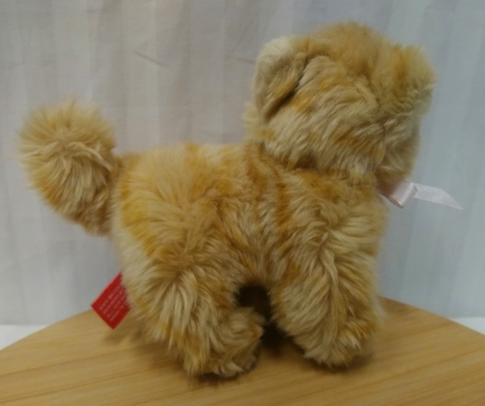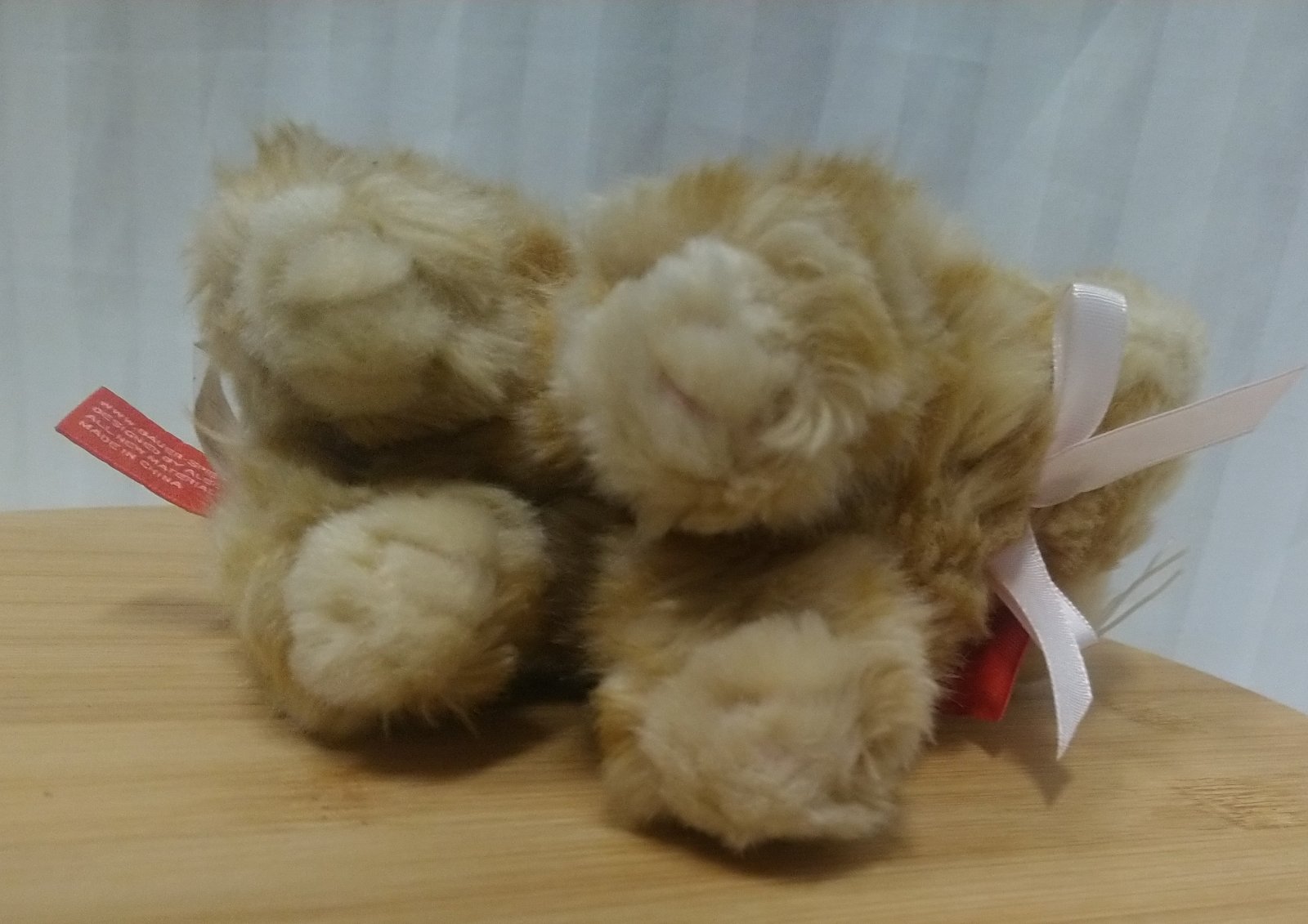 Plyšová svetlo hnedá Mačka, pásikavá, s červeným srdiečkom na krku,