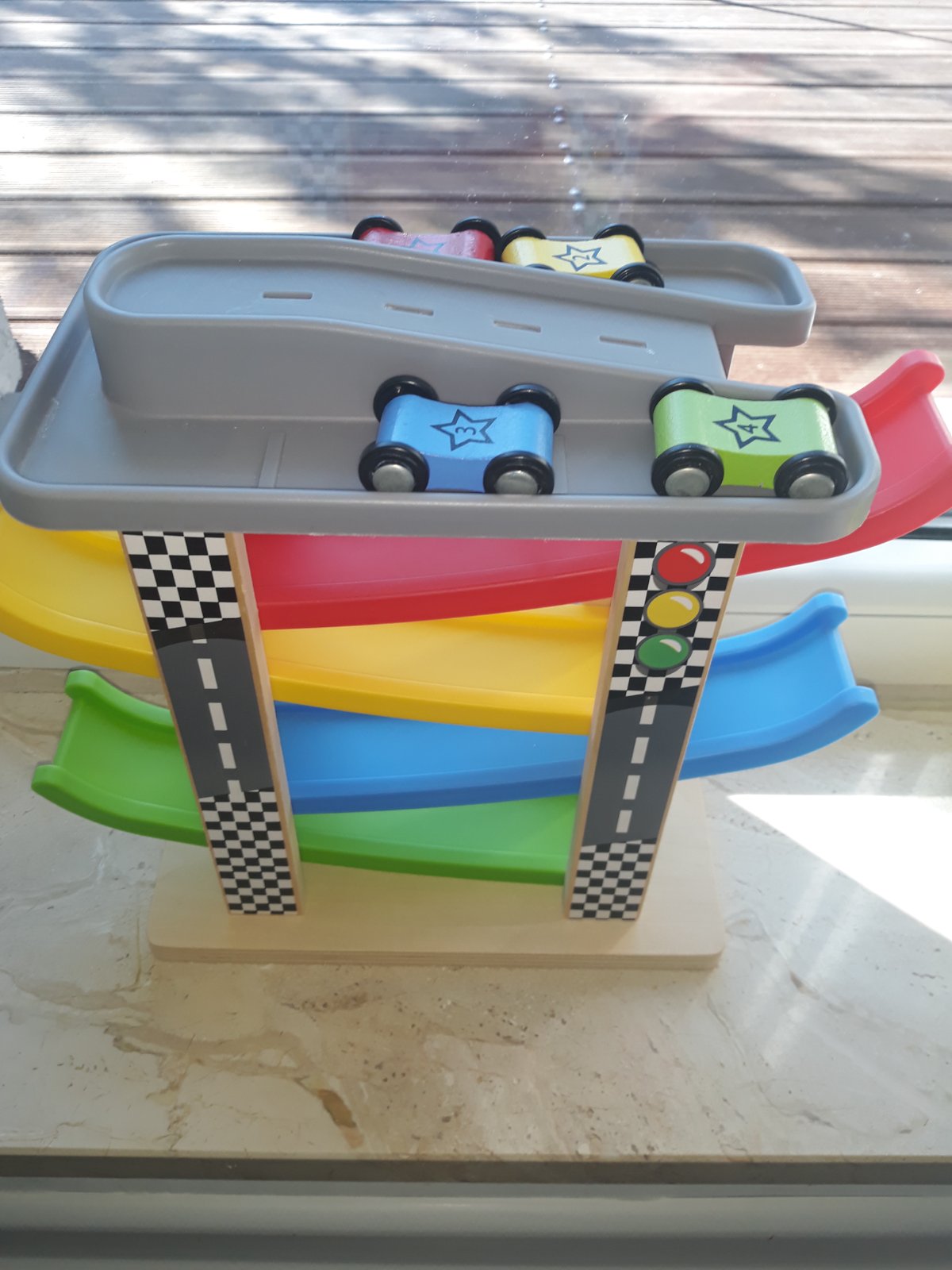 Drevená pretekárska veža Playtive. Z dreva a plastu. Podporuje koordináciu rúk a očí, motoriku a šikovnosť. S 5 úrovňami a 4 pretekárskymi autami. Vhodná pre deti od 1,5 roka. 5-dielna súprava.