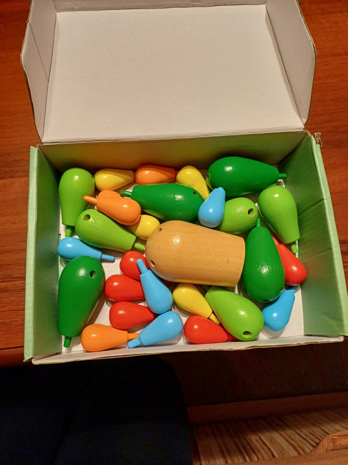 Drevená hračka od 36 m. Jednotlivé časti sú dosť veľké, aby to vedelo skladať aj dieťa. Našu to bavilo, ale žiaľ musíme posunúť ďalej, nakoľko to už pozná a už z nej vyrástla