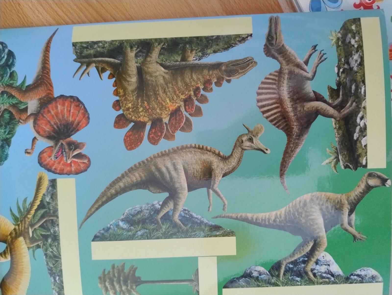 Na vystrihovanie sú 2 obrazky vnútro, a celý ten obal sa dá vystrihnúť a postaviť jednoduchý dinosauri park