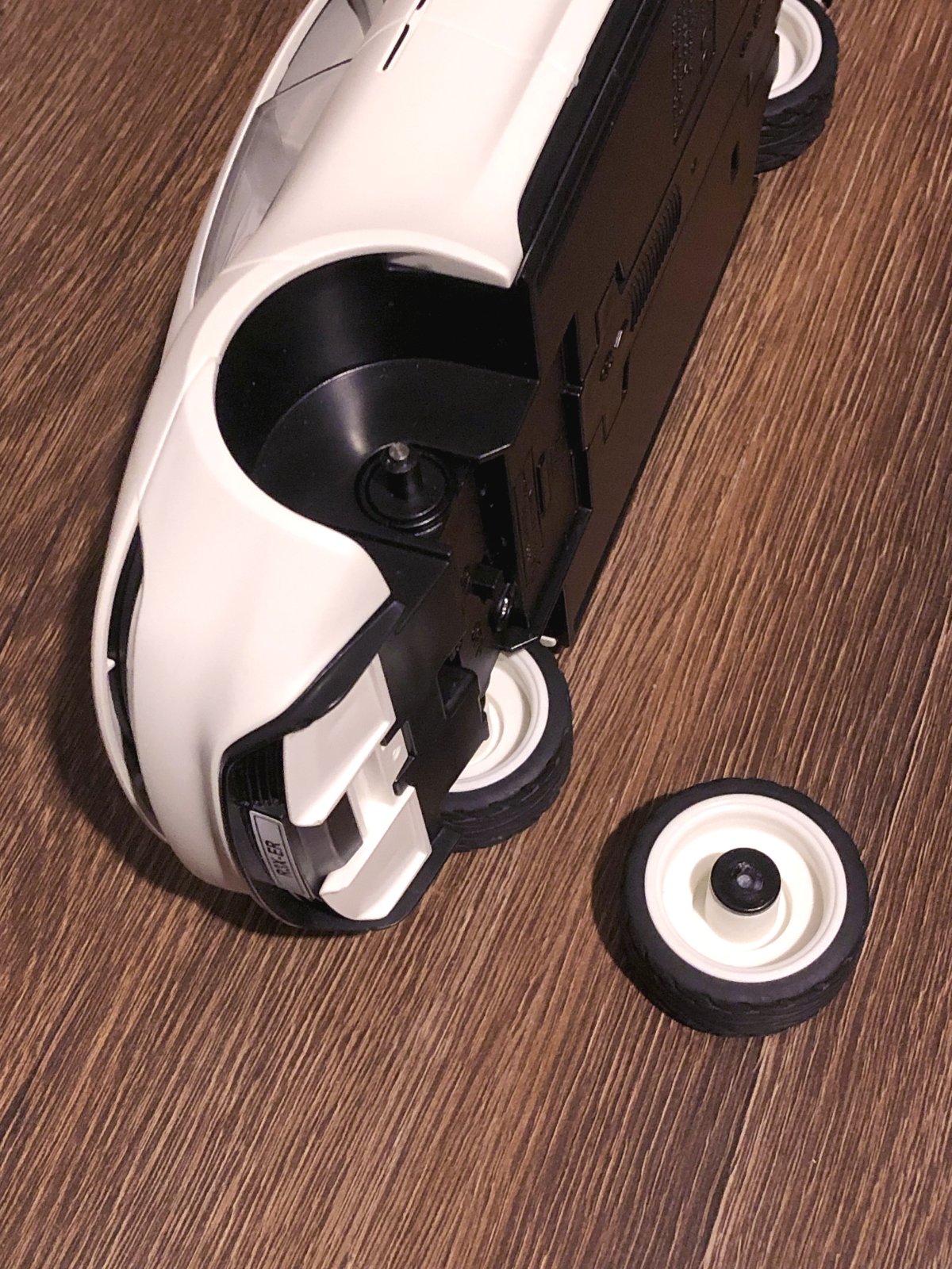 Jedno koleso je zlomené, treba opraviť.
