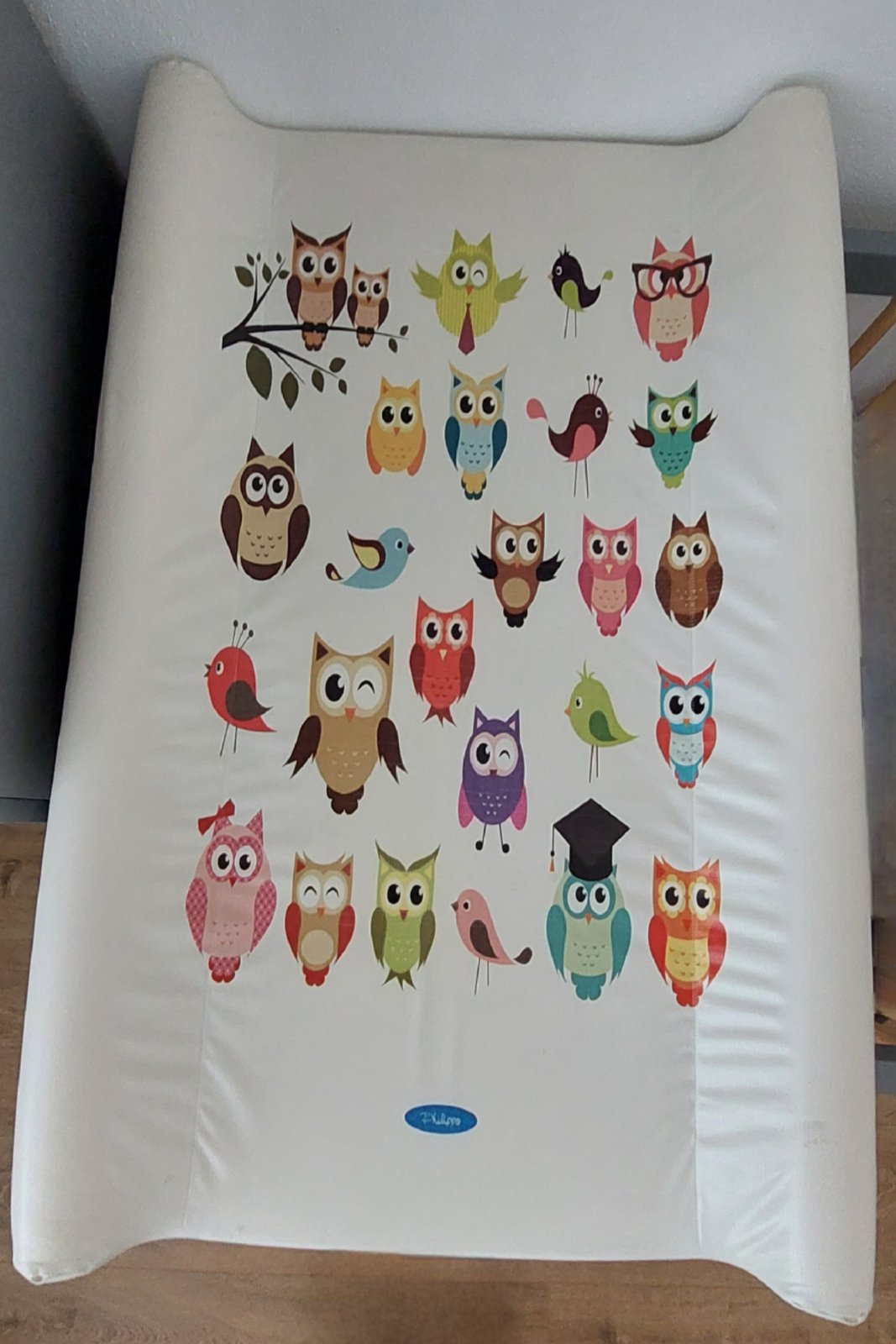 Sada so sovičkami. Prebaľovacia podložka má zospodu vysúvacie nožičky/úchytky, aby sa podložka nezošmykla z postieľky.