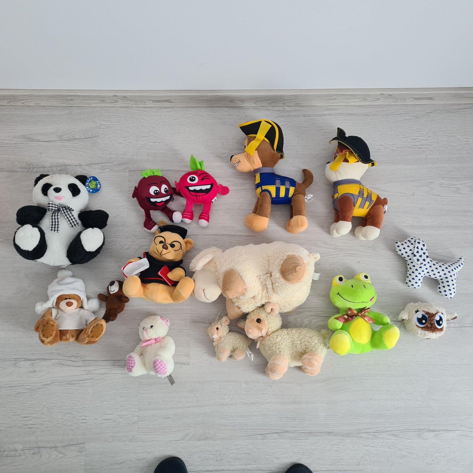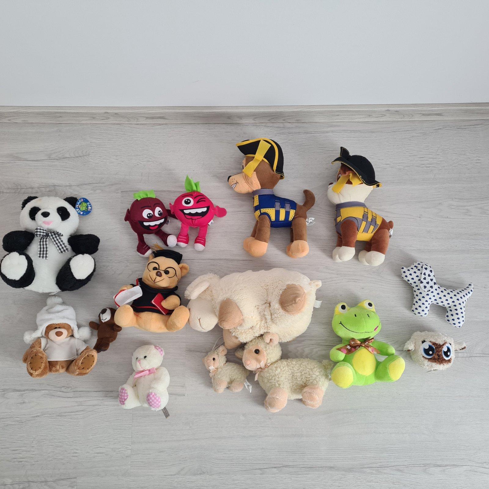 Predám rôzne plyšáky, napr. paw patrol chase a rubble - top stav len vystavený, vibovitkovia, ovečky, mackovia, ovečky sú viac hrané, panda nová len ma špinavý fľak, a žabka vystavená len sa začala párať vzadu viď. foto. Cena rôzna určite sa dohodneme 🙂