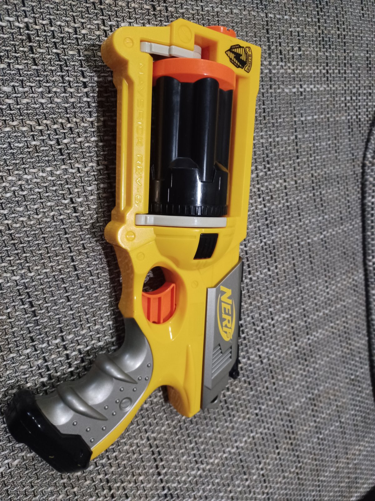 Predám detskú zbraň Nerf maverick REV-6. Je to zbraň dlhá 28 cm na 6 nábojov. Funguje perfektne.