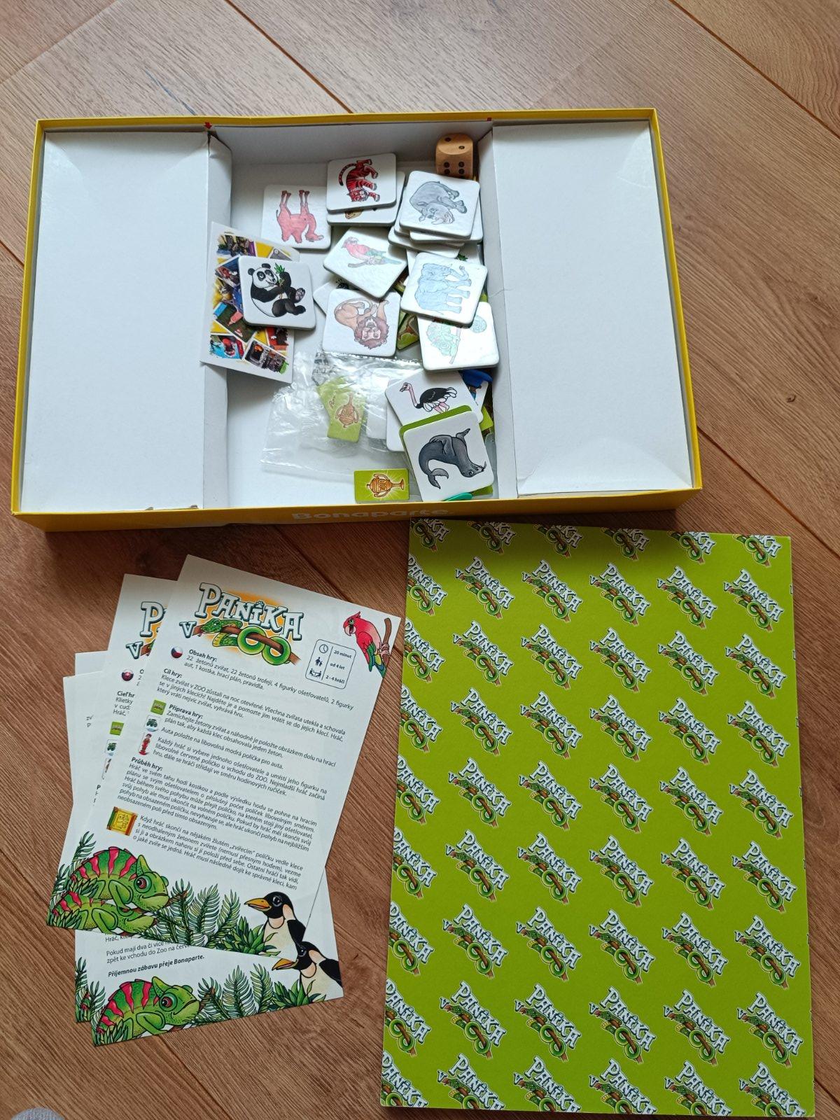 Panika v ZOO je zábavná hra pre deti už od štyroch rokov. Malí hráči musia v úlohe ošetrovateľov v ZOO nájsť rozutekané zvieratká a umiestniť ich naspäť do ich klietok. Hráči sa pohybujú po ZOO na základe hodu kockou. Keď sa hráčovi podarí zastaviť na žltom políčku so zvieratkom vedľa niektorej z klietok, vezme si z nej zvieratko (otočené lícom dole). Jeho úlohou je toto zviera premiestniť do správnej klietky. Pokiaľ sa mu to nepodarí, nesmie otáčať ďalšie zvieratá. Keď však zviera premiestni, položí ho do klietky lícom hore a vezme si trofej ako bod. Na svoj pohyb po ZOO môže využívať dve autá. Tie mu umožňujú zdvojnásobiť svoj hod kockou a pohnúť sa teda až o dvojnásobný počet políčok. Víťazí hráč s najvyšším počtom nazbieraných trofejí.