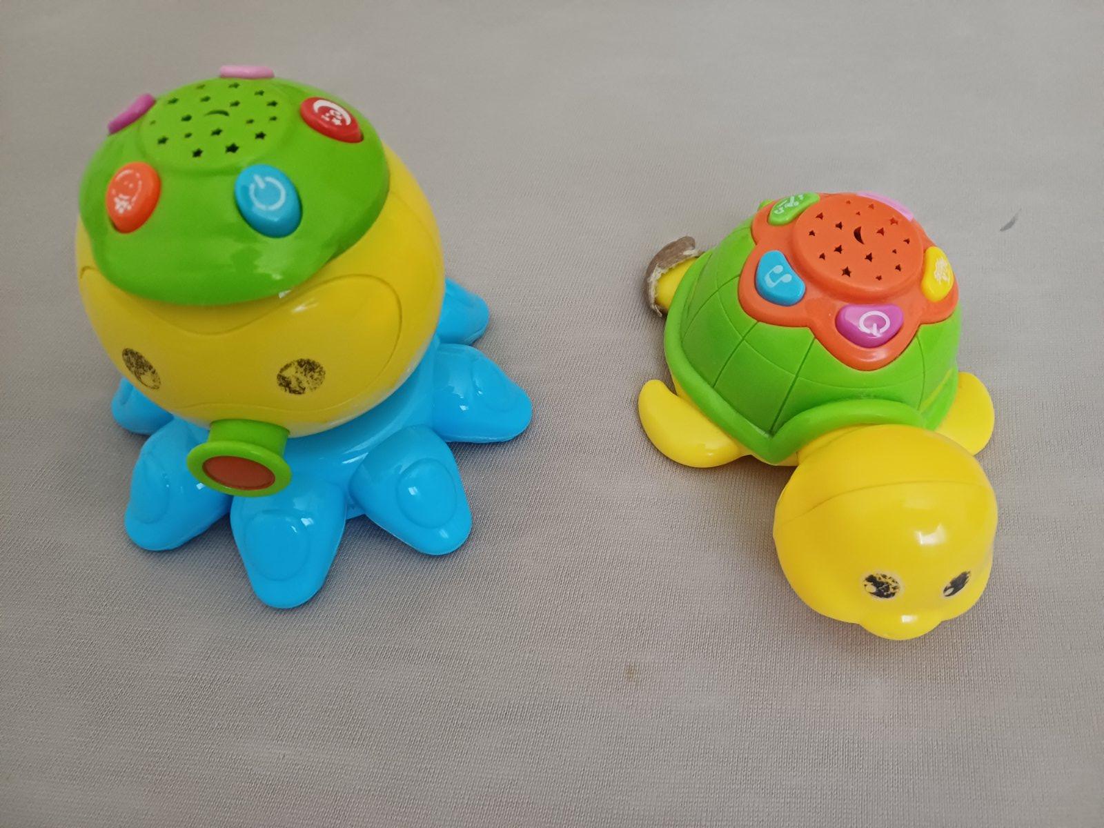 Svietiace a hrajúce zvieratká chobotnica a korytnačka.