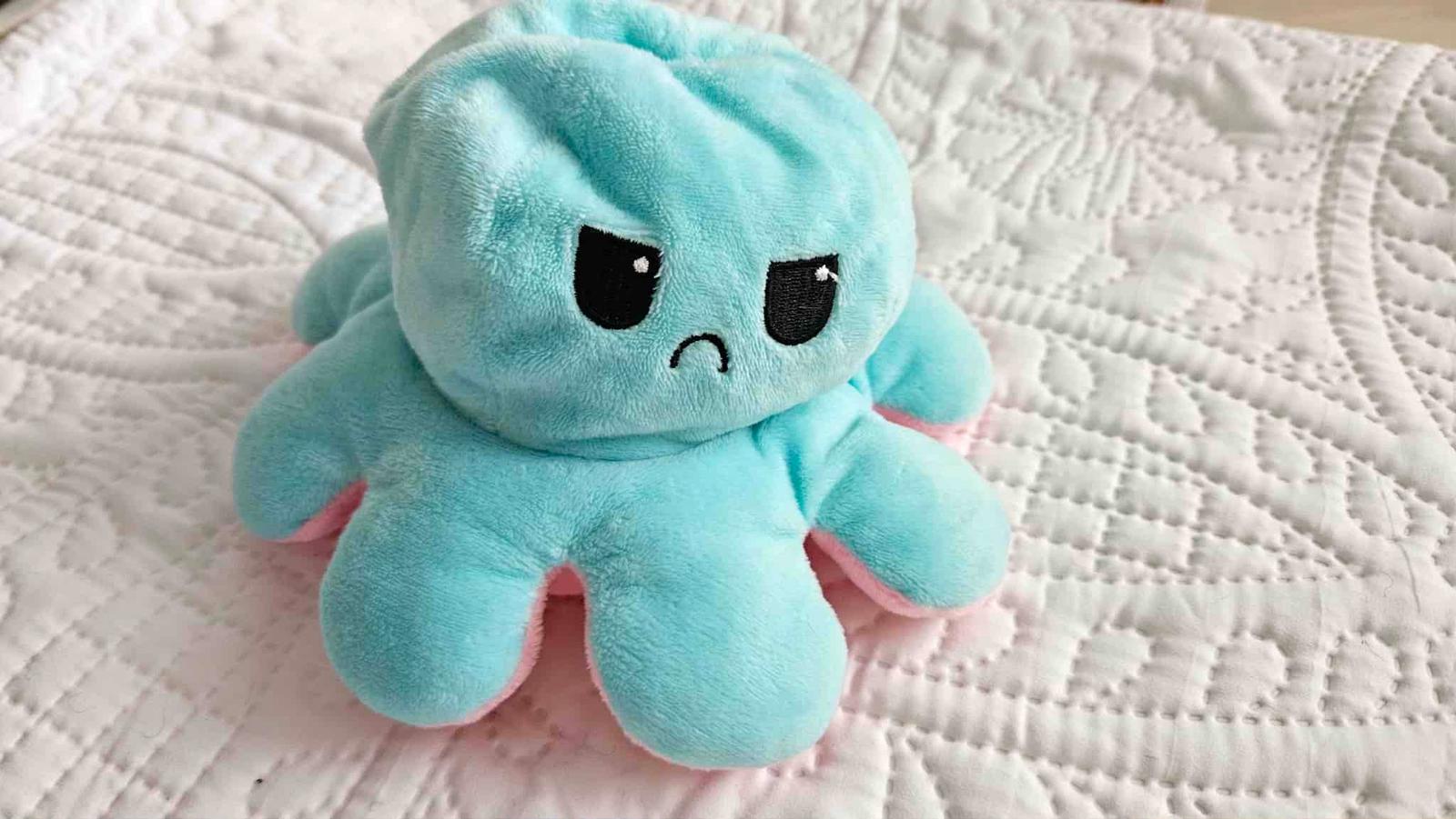 Vďaka jej dizajnu môže dieťa vyjadriť svoju náladu bez použitia slov - jedna strana je ružová, druhá modrá. Tieto plyšové chobotničky sú vynikajúcim komunikačným nástrojom a pomáhajú lepšie pochopiť pocity, čo je užitočné najmä pre deti.