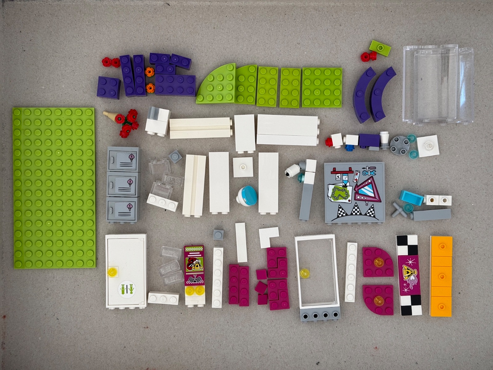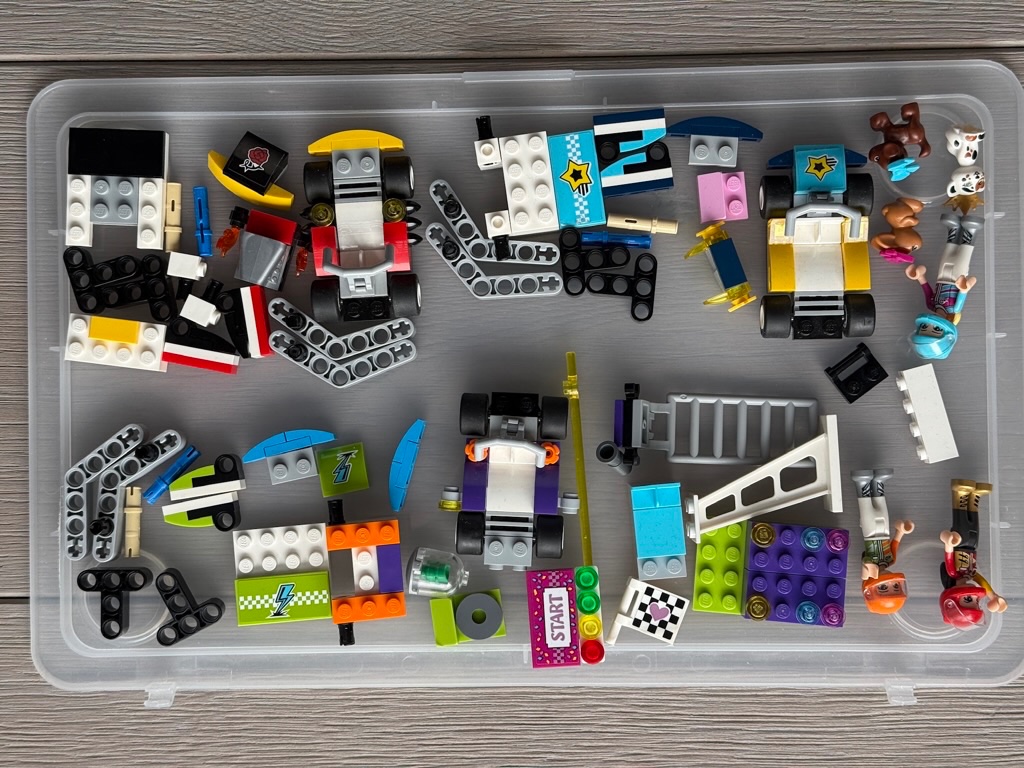 LEGO Friends 41352 Deň veľkých pretekov s krabicou a návodom. Chýbajú 2 nálepky označene na foto.