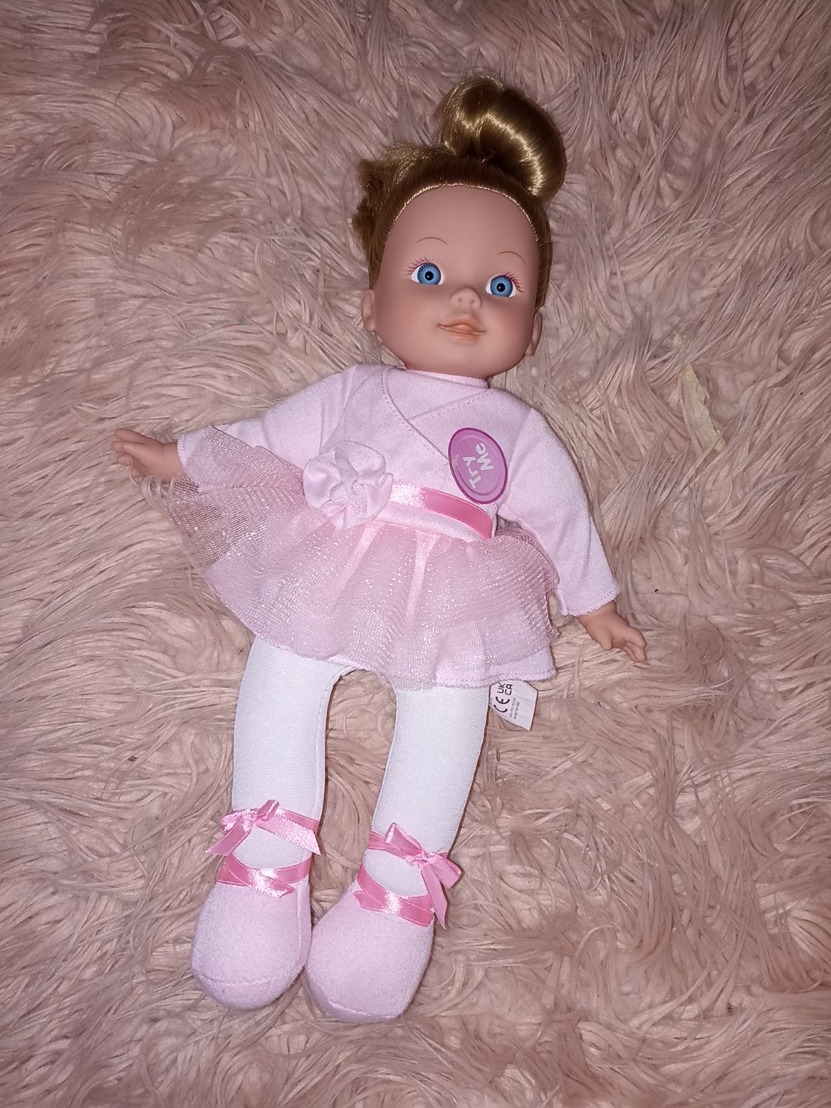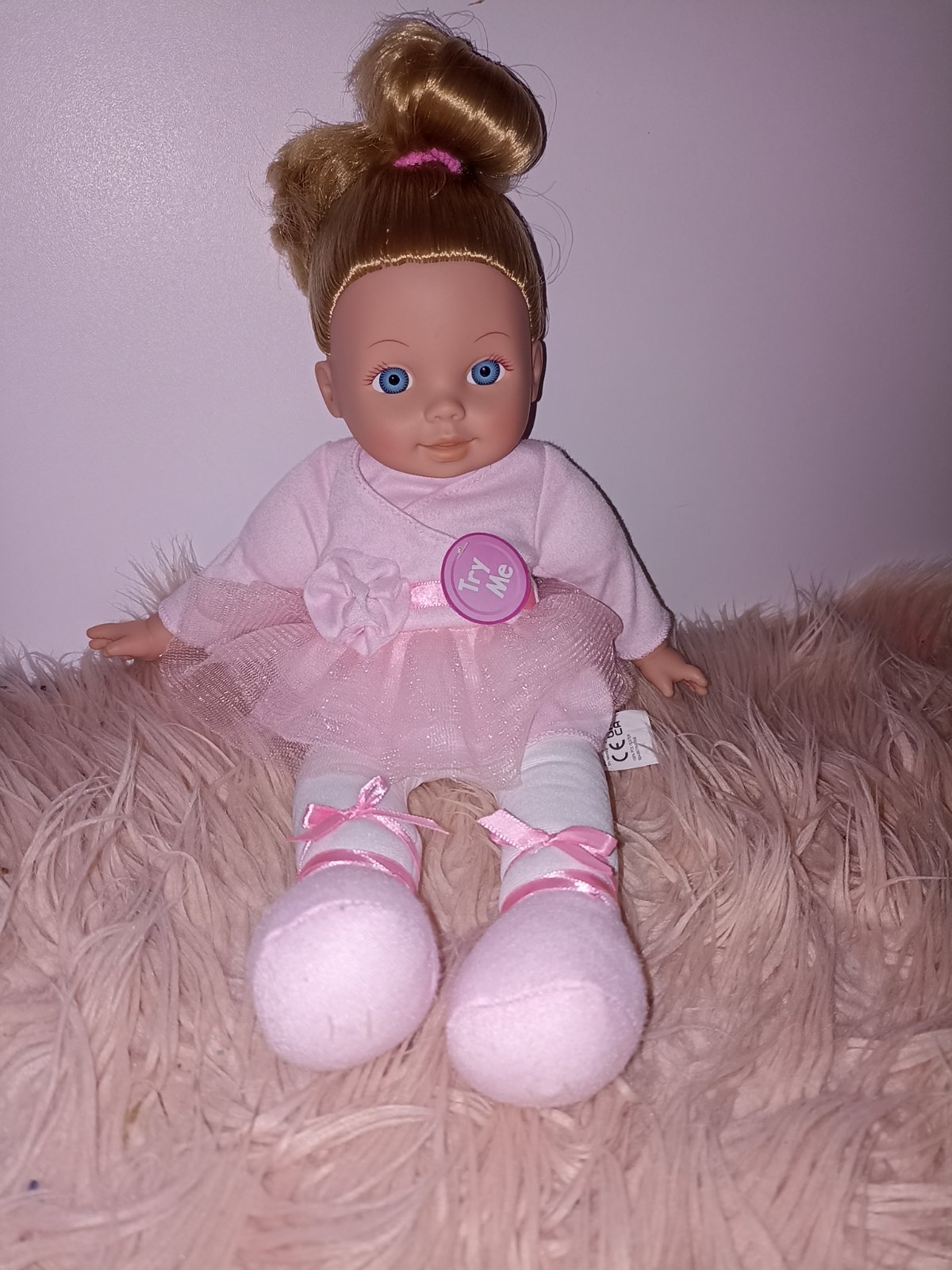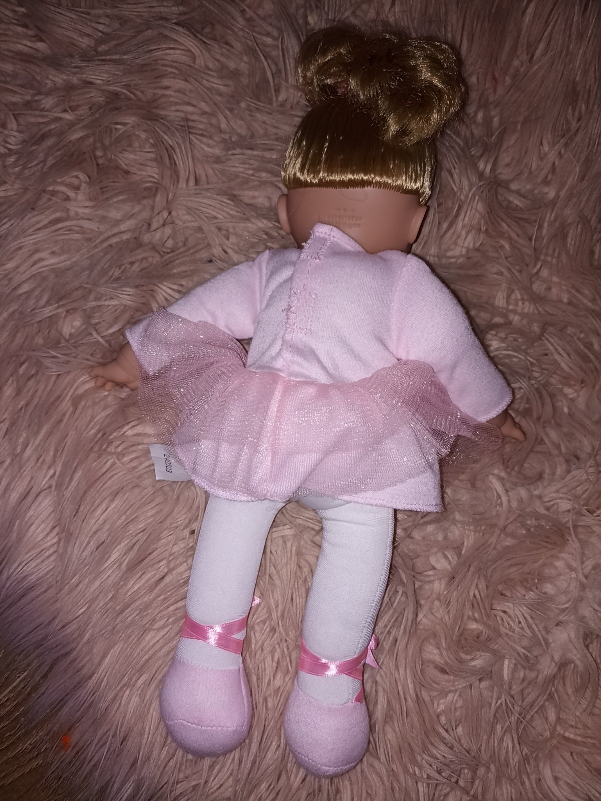 Krásna bábika baletka s látkovým telom a vlasmi uviazanými do drdola.