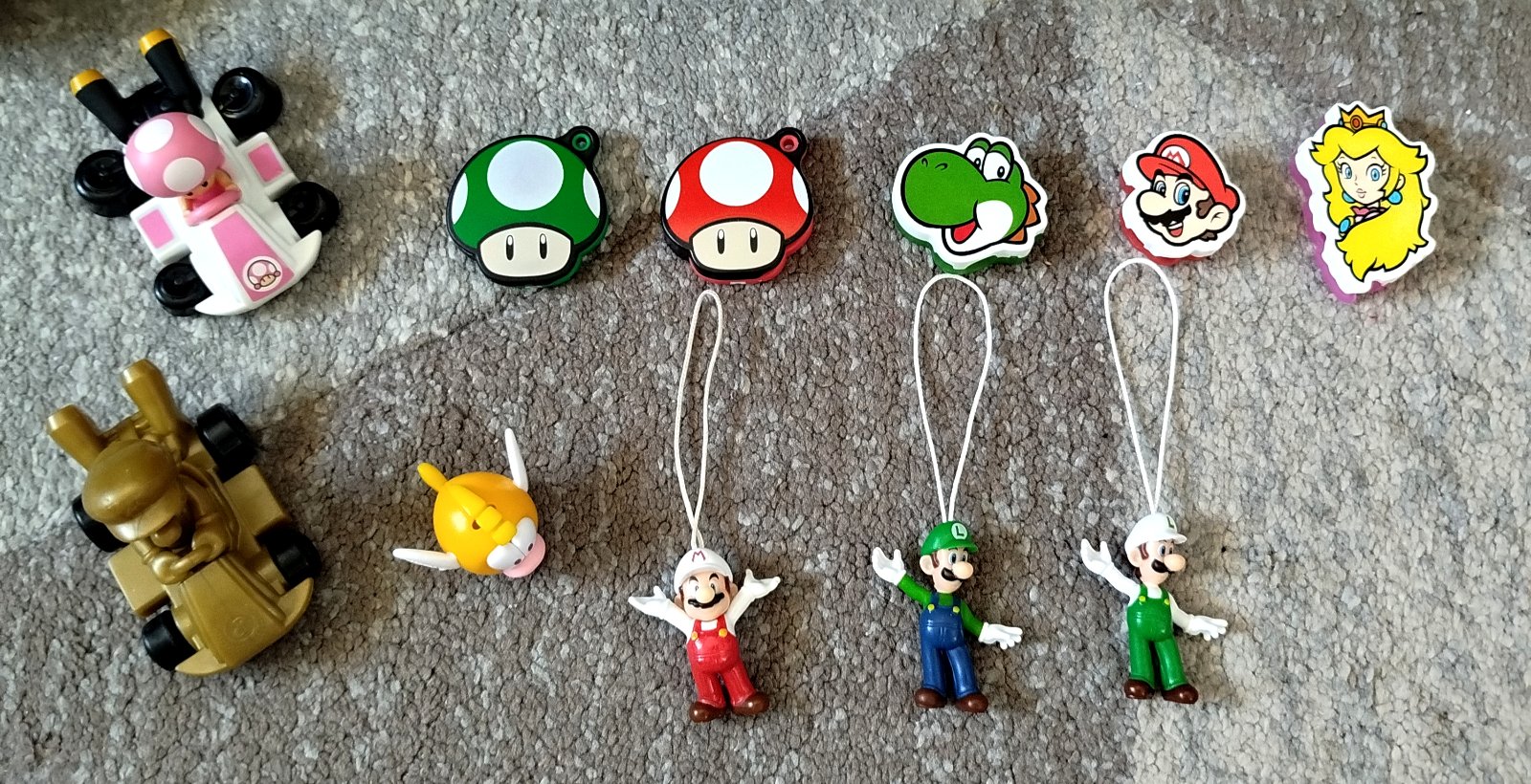 Figúrky 11ks, autíčka sú z kolekcie McDonald's, je tam vzácny zlatý Super Mário. Ostatné figúrky sú Kinder. Cena a predaj LEN SPOLU!