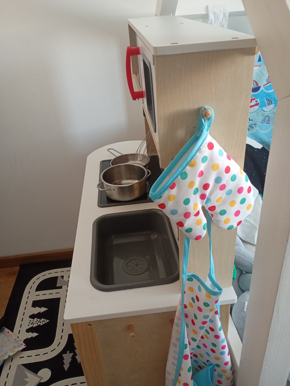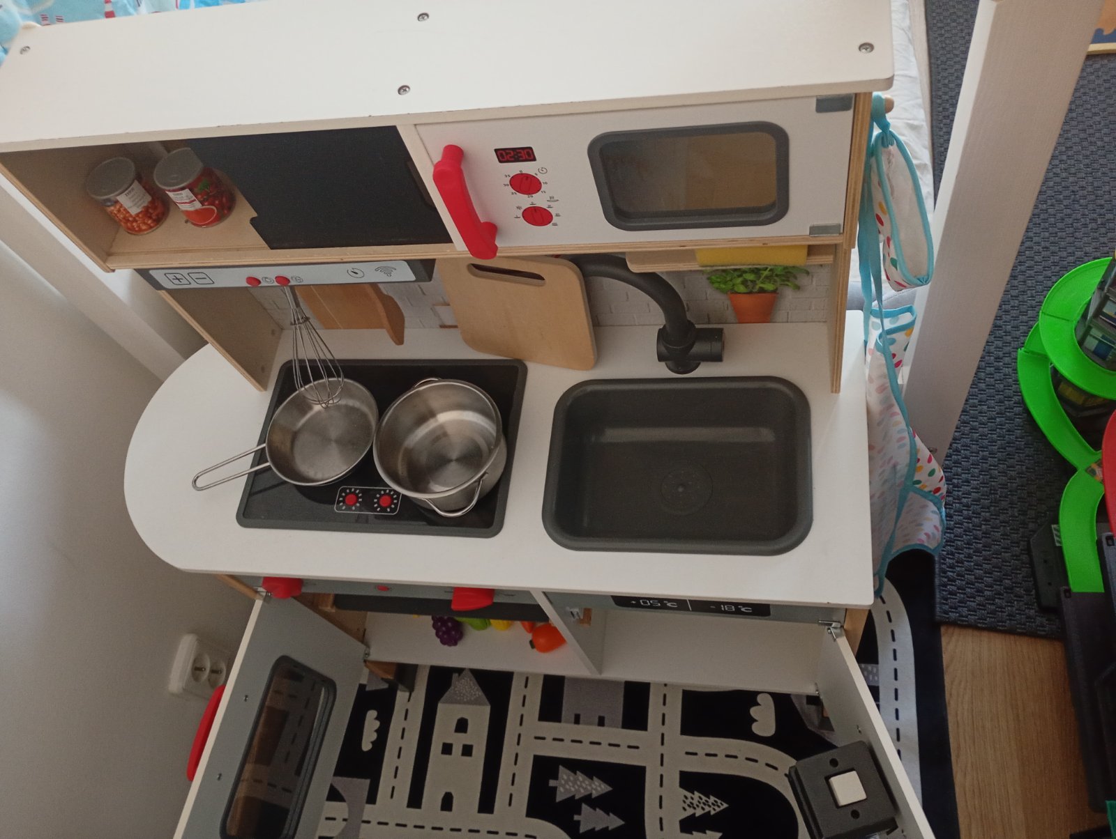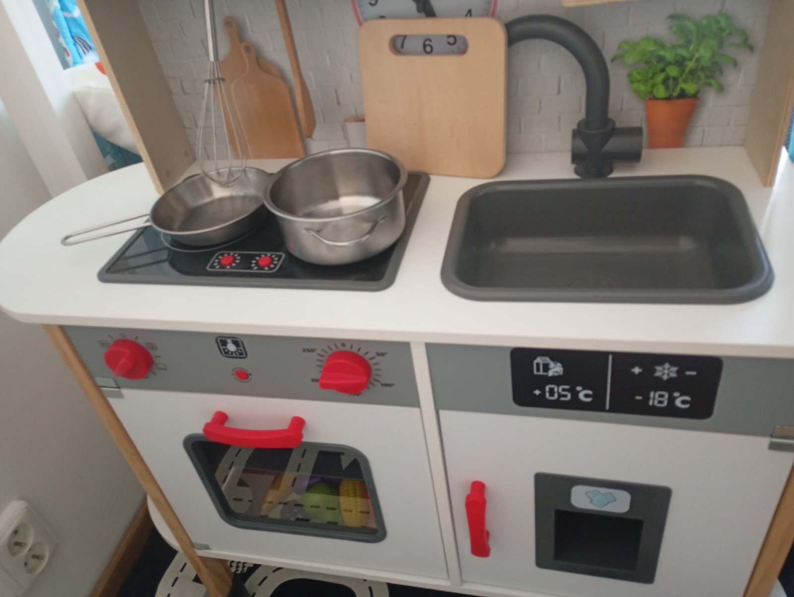 Na predaj detská kuchynka lidl,všetko funkčné,k tomu aj umelé ovocie a zelenina,plus zopár drevených z tchiba,jediná chybička krásy je puklina na varnej doske.