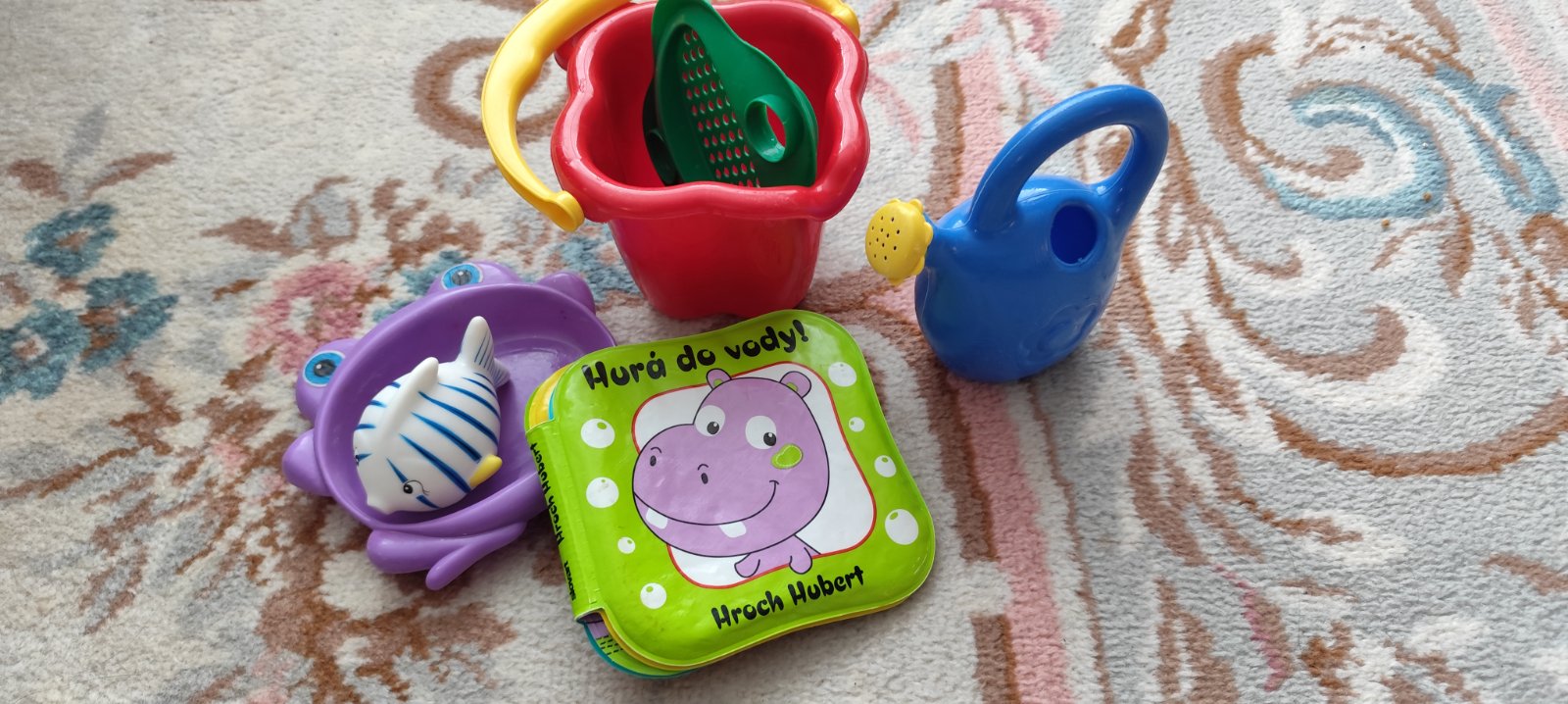 Predam balicek hraciek do bazena. Kniha je nepremokava.