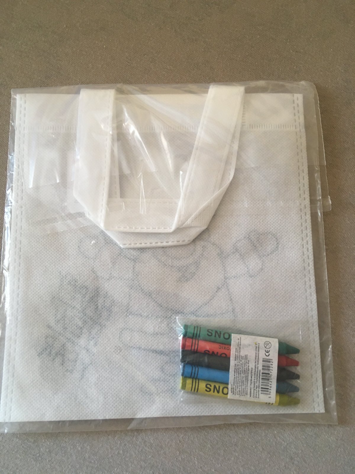 Taška z netkanej textílie s 5 pastelkami na vyfarbenie.