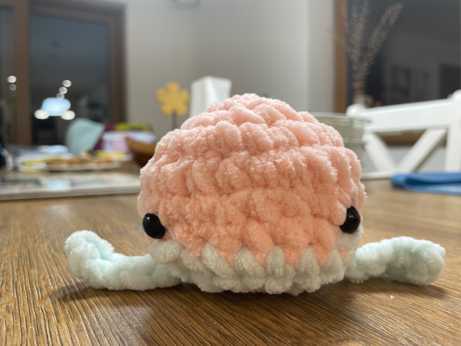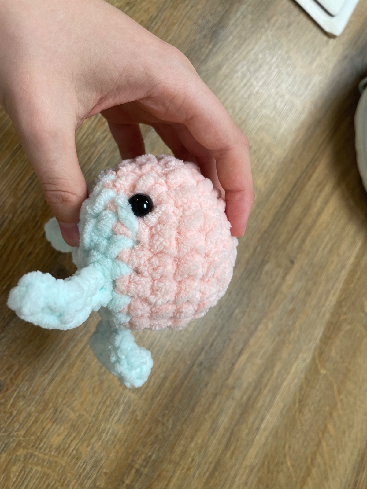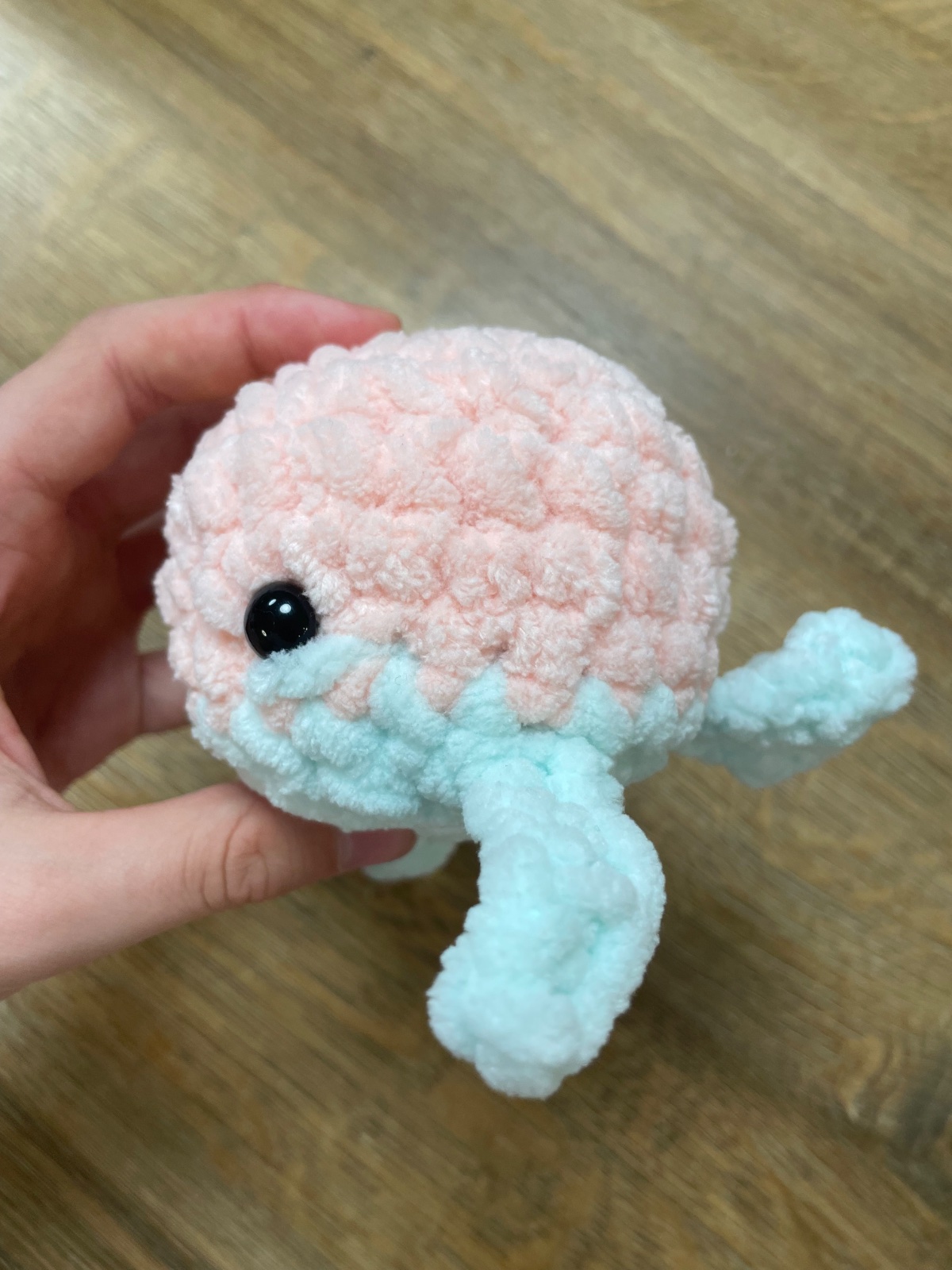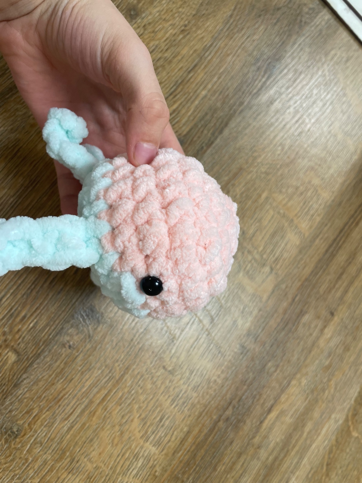 Pastelova ručne hackovana velrybka, hand made. Hackovala 10 ročná dcérka. Úplne nova vnútro antialergické náplň. Vhodná aj ako darcek